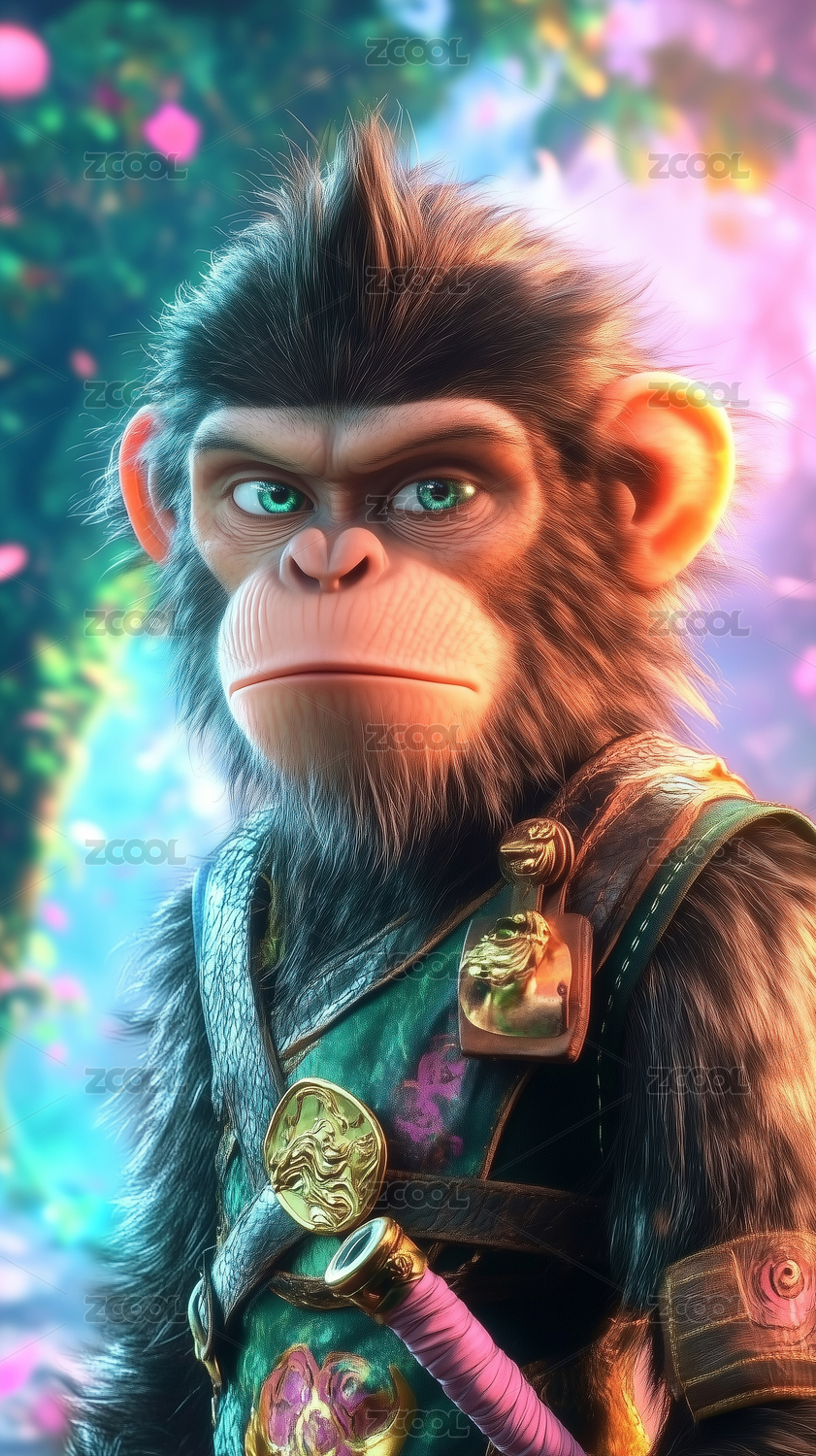 大猩猩可爱唯美野生动物3D卡通插画壁纸