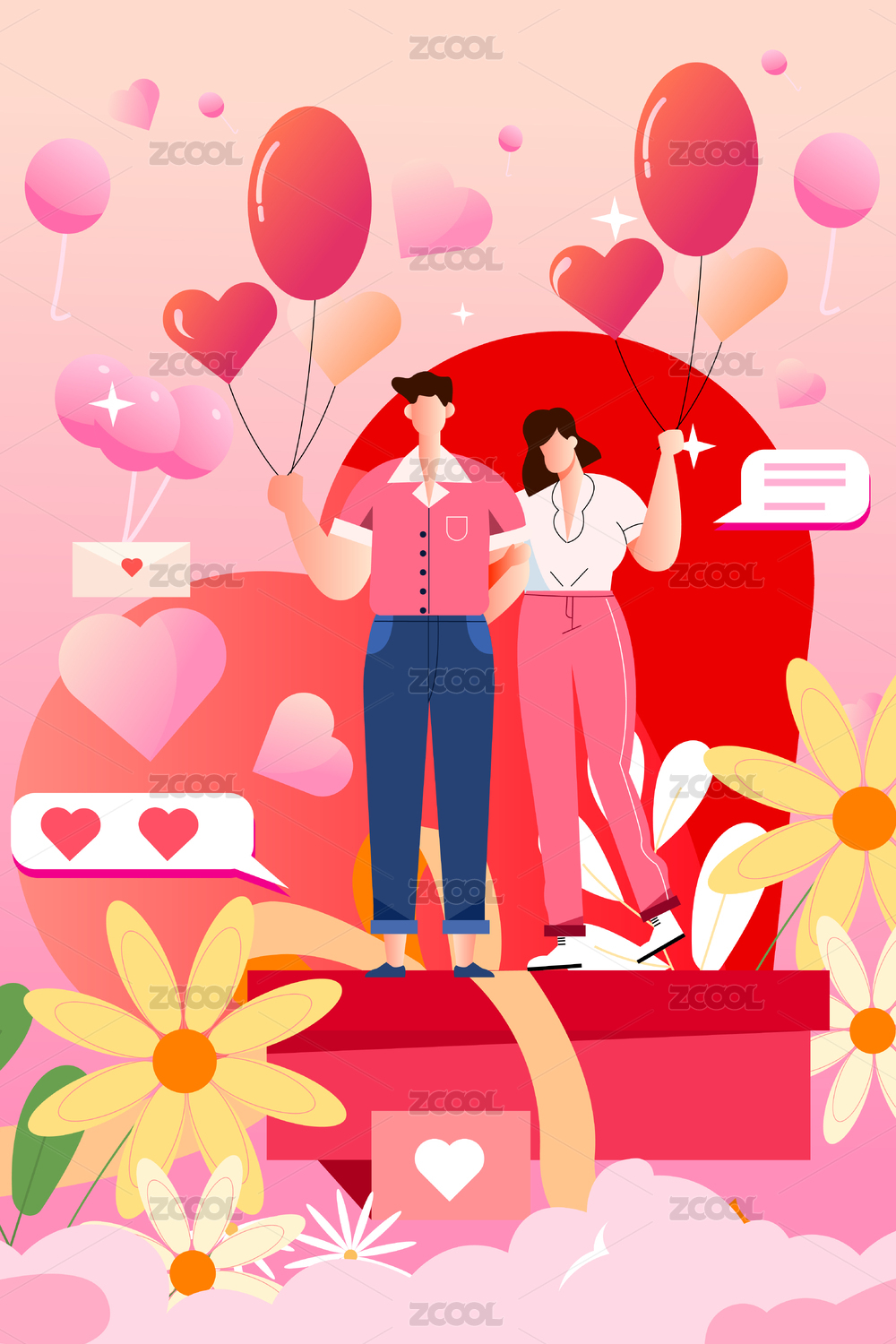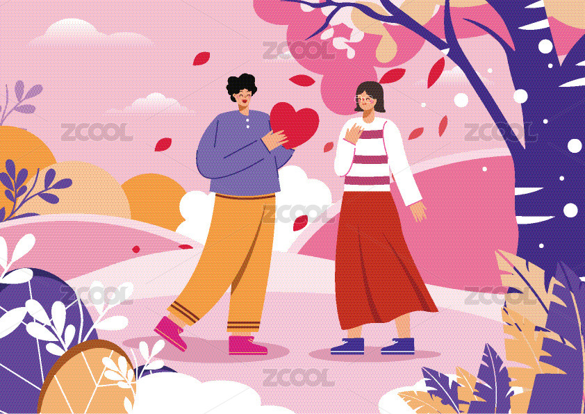 情侣情人节表白日约会恋人浪漫旅行爱情插画