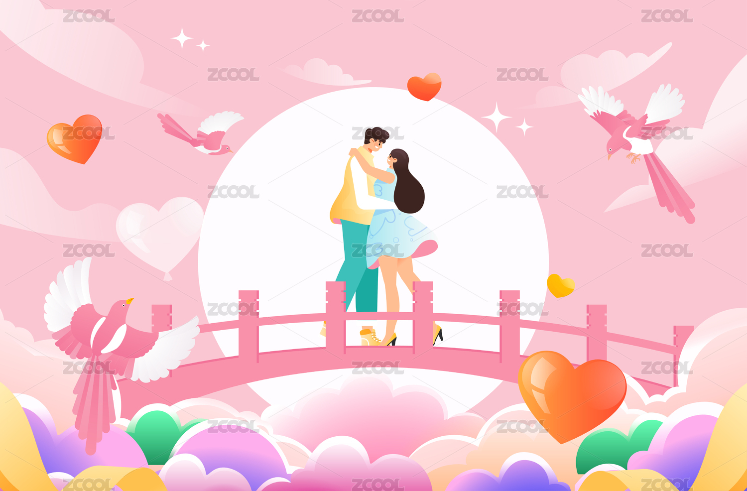 七夕情人节插画