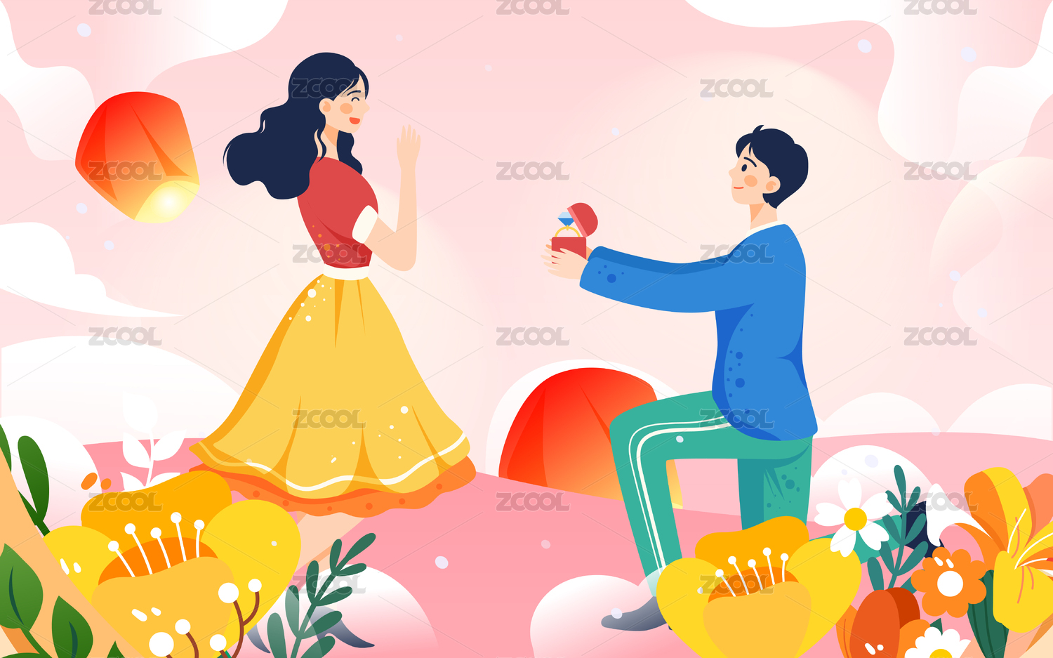 520情人节情侣求婚插画恋人浪漫爱情海报