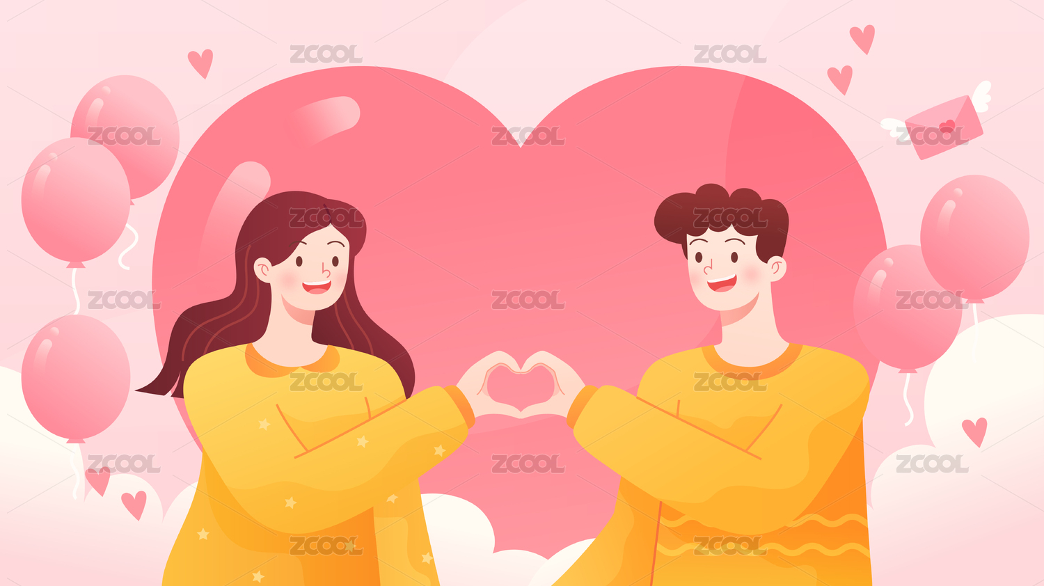 情人节520情侣比心矢量运营横幅插画