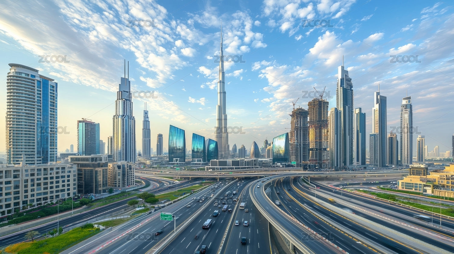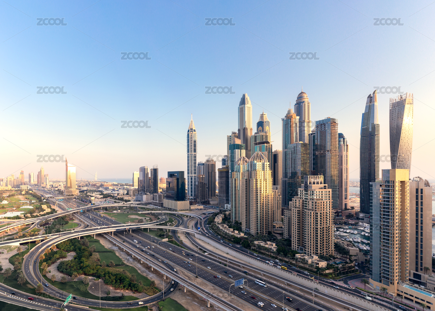 阿联酋迪拜赛博朋克风城市鸟瞰