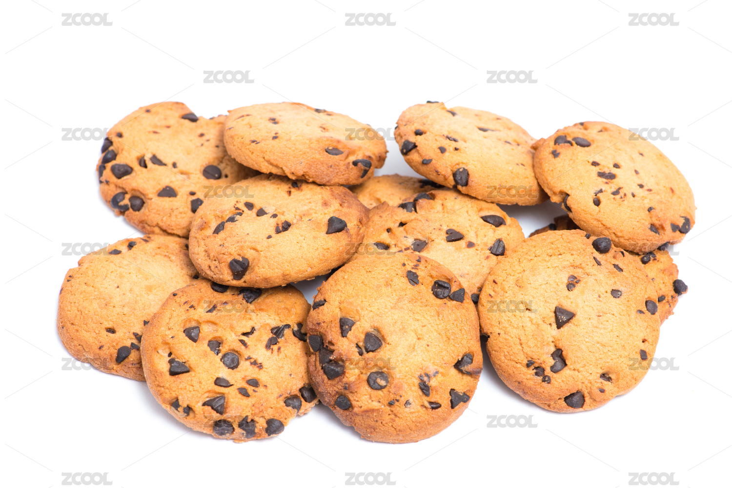 白色背景上的一堆巧克力曲奇饼干