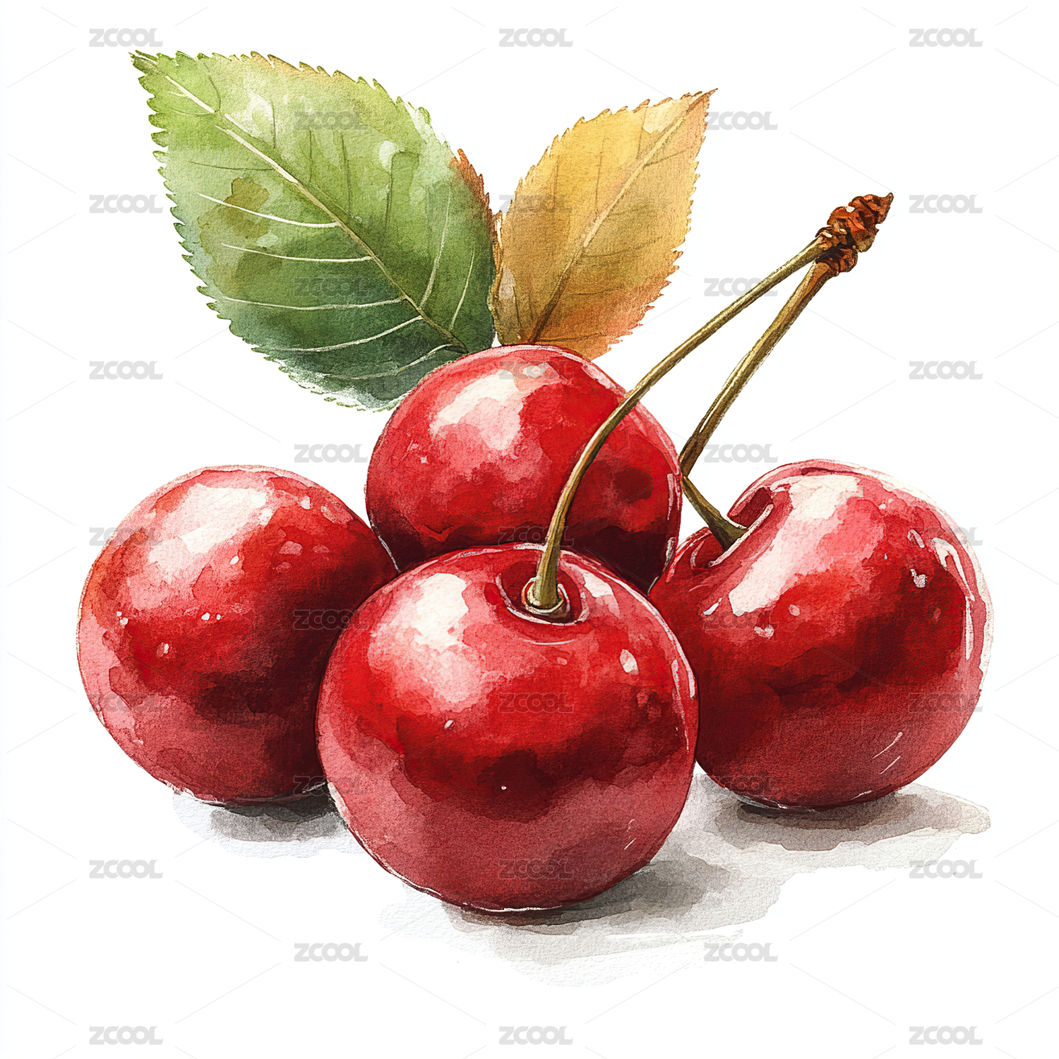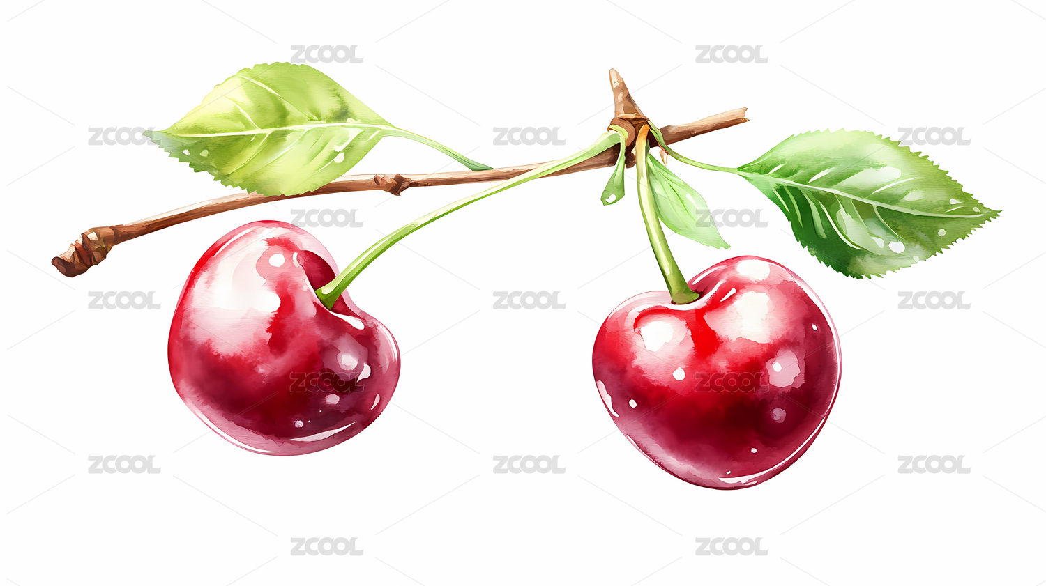 插画,水彩风,维生素,健康,自然,水果,果实,多汁,樱桃,静物
