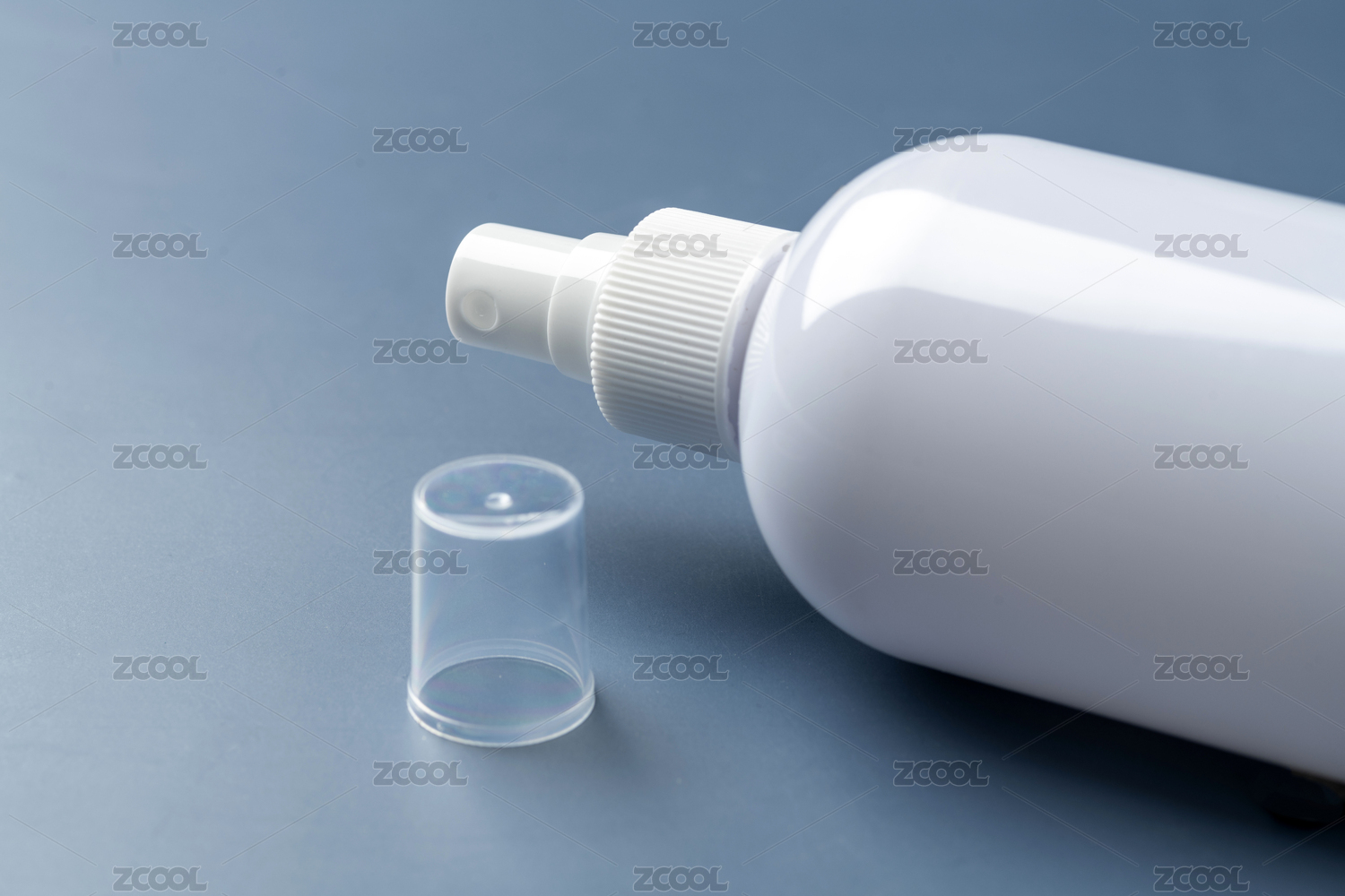 白色喷雾瓶子雾化喷壶特写蓝色背景