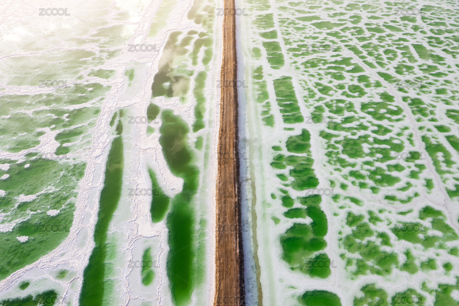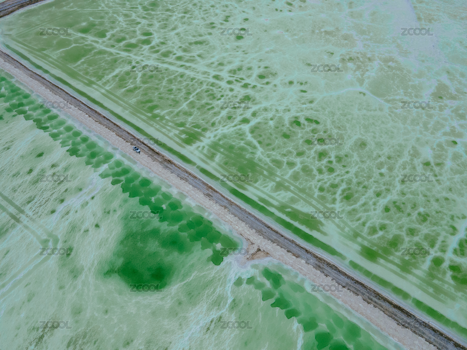 中国,茫崖,翡翠湖,青海省,盐湖,航拍,鸟瞰,无人机,绿色,汽车