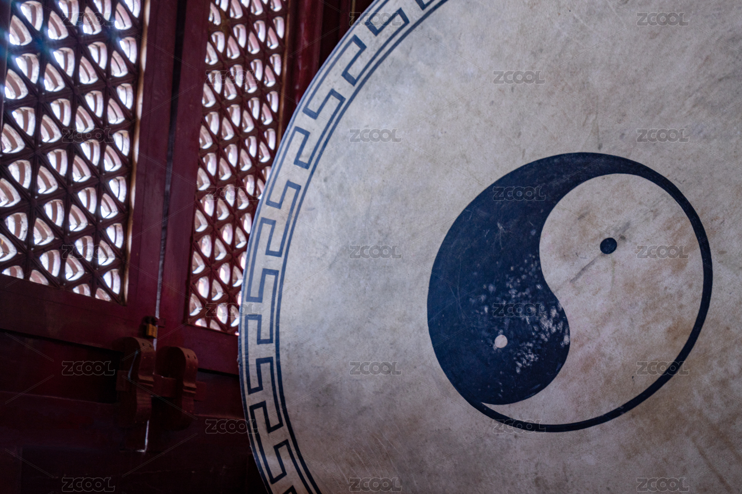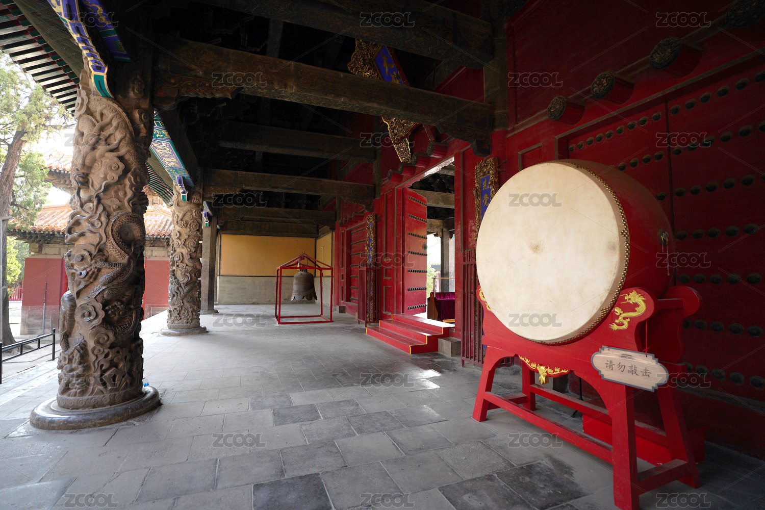 秋天阳光下中国北京古建筑钟鼓楼特写