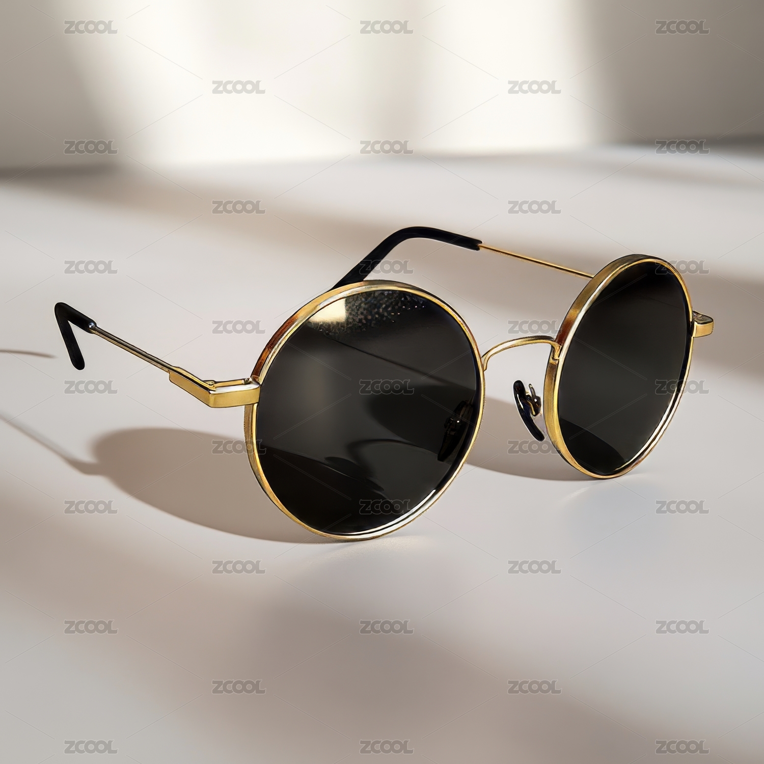 复古天然水晶茶色无框圆形太阳镜墨镜特写