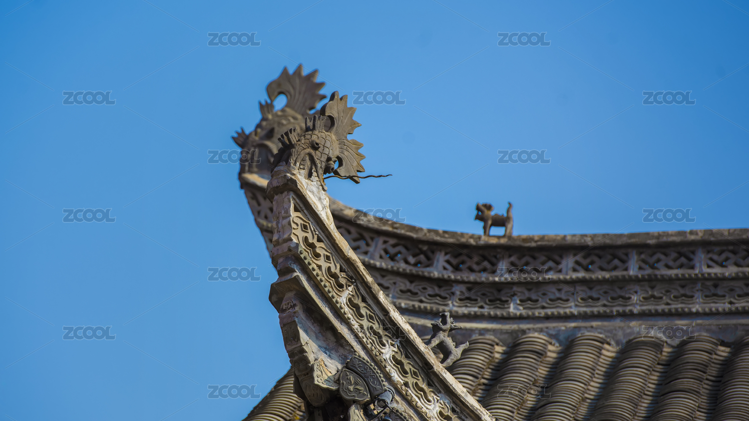 甘肃陇西李氏宗祠古建筑屋顶上的动物雕刻