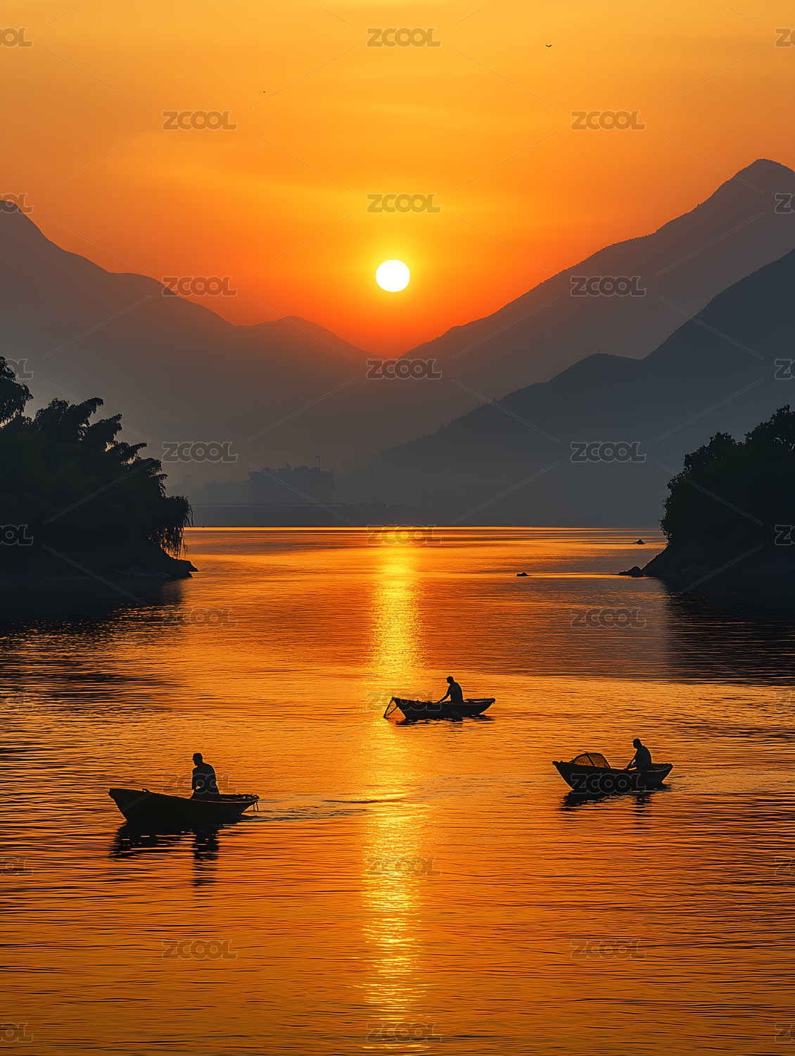 中国广东珠海金湾区三板村水乡美丽的晚霞