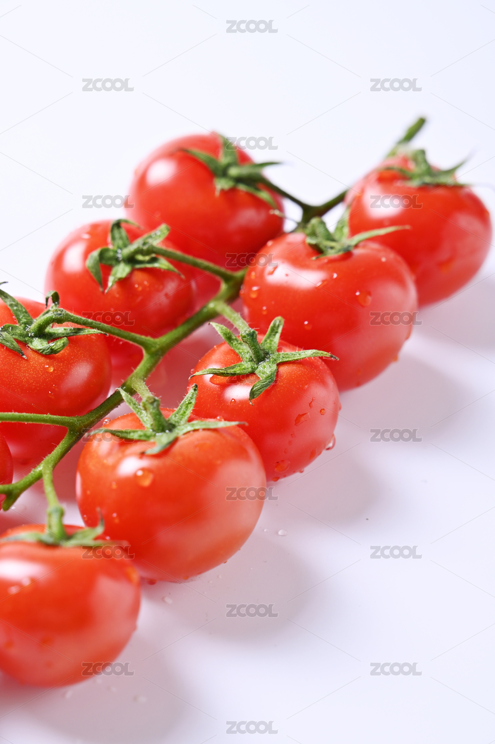 白底上一串新鲜的小西红柿