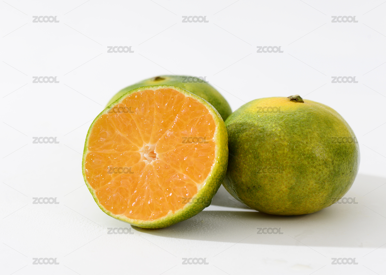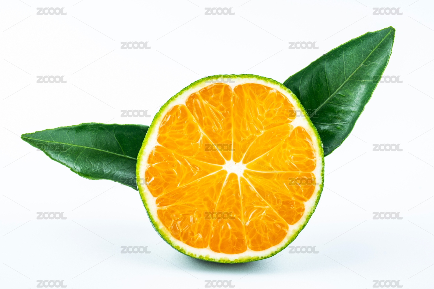 新鲜的无籽柑切开露出橙黄色的果肉特写