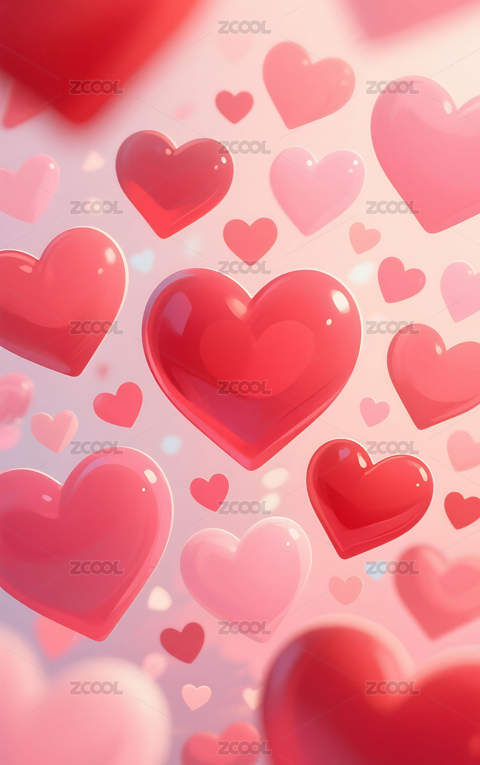 大量爱心堆叠漂浮在一起