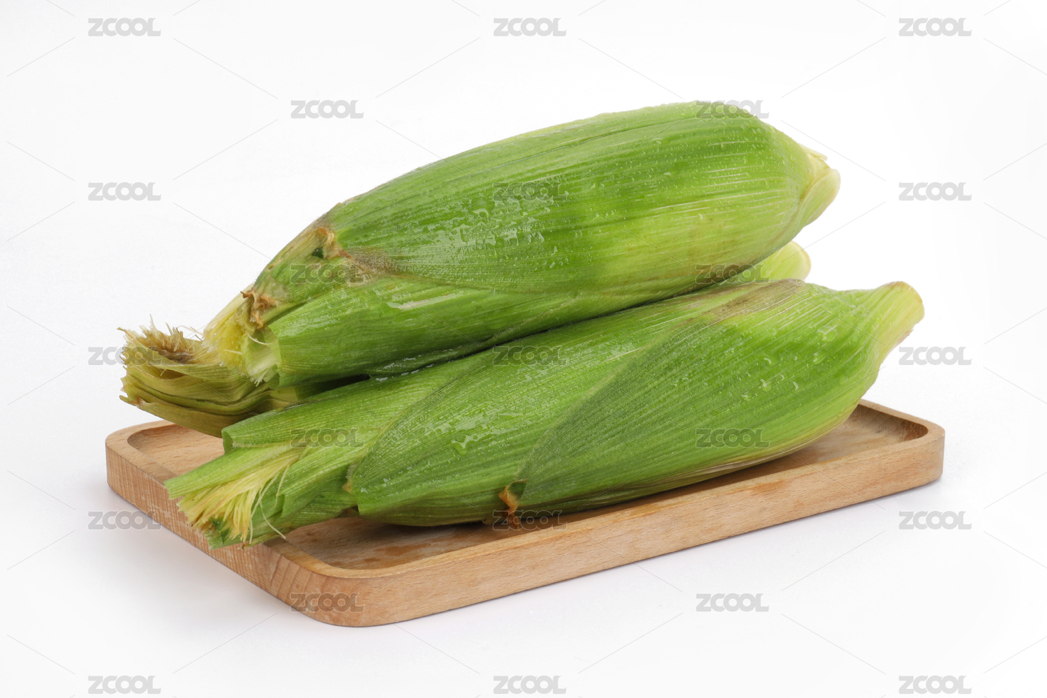白底放着的玉米棒