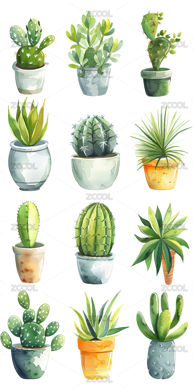 仙人掌,贴纸,卡通,图标,插画,花,盆栽,素材,复古,二次元