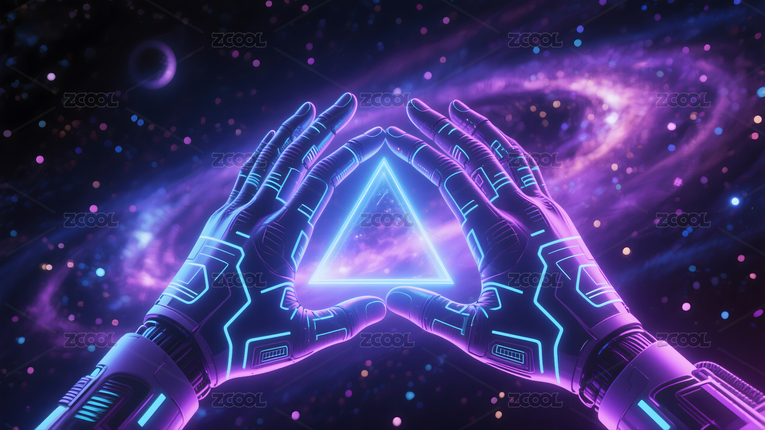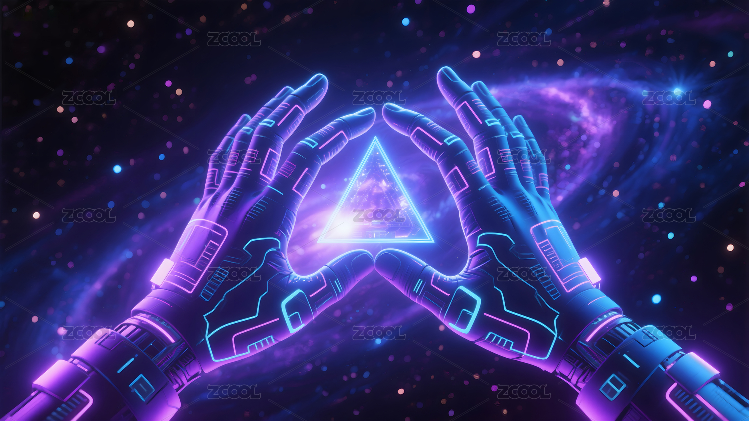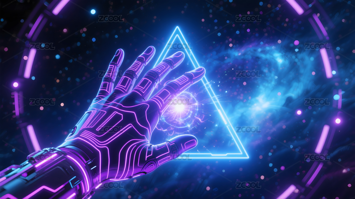 炫彩,三维,3D,流光,蓝色,银色,紫色,科技,芯片,手