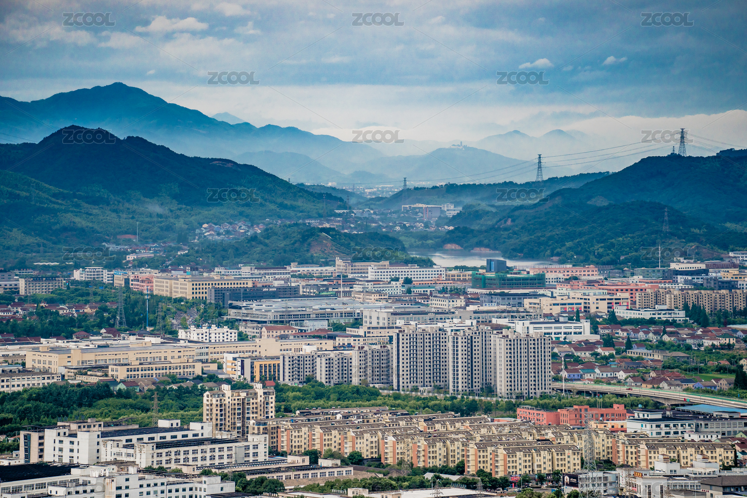 衢州坞石村城市风光高视角