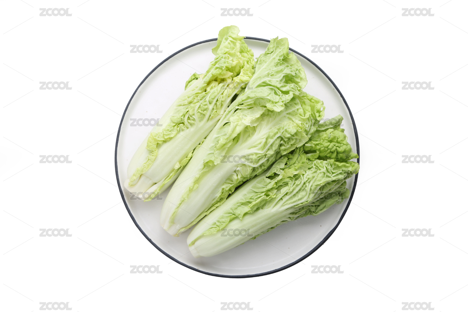 用盘子装着的生菜白底图