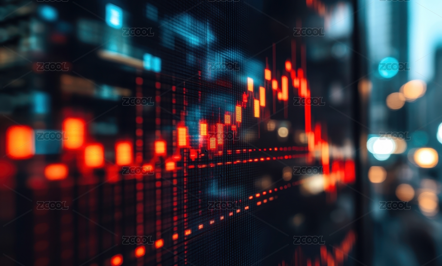 股市图表与城市夜景叠加