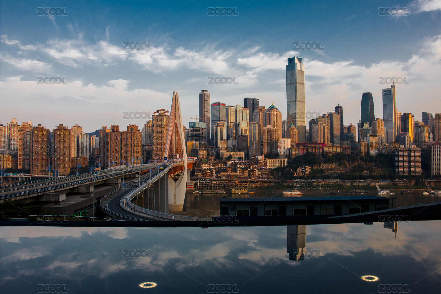 解放碑洪崖洞千厮门大桥嘉陵江倒影