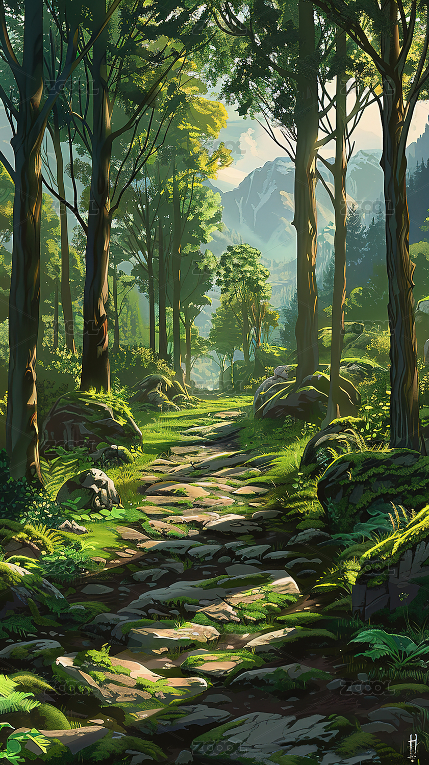 自然户外日系卡通漫画清新治愈唯美AI数字