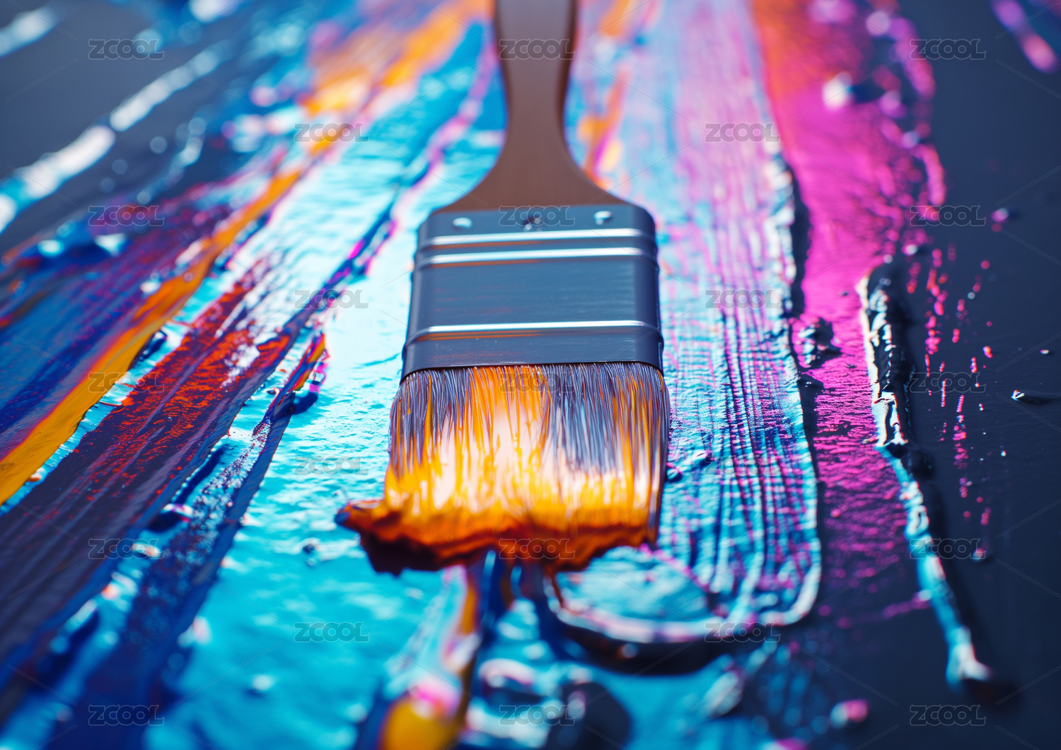 油彩刷与彩色颜料调色.