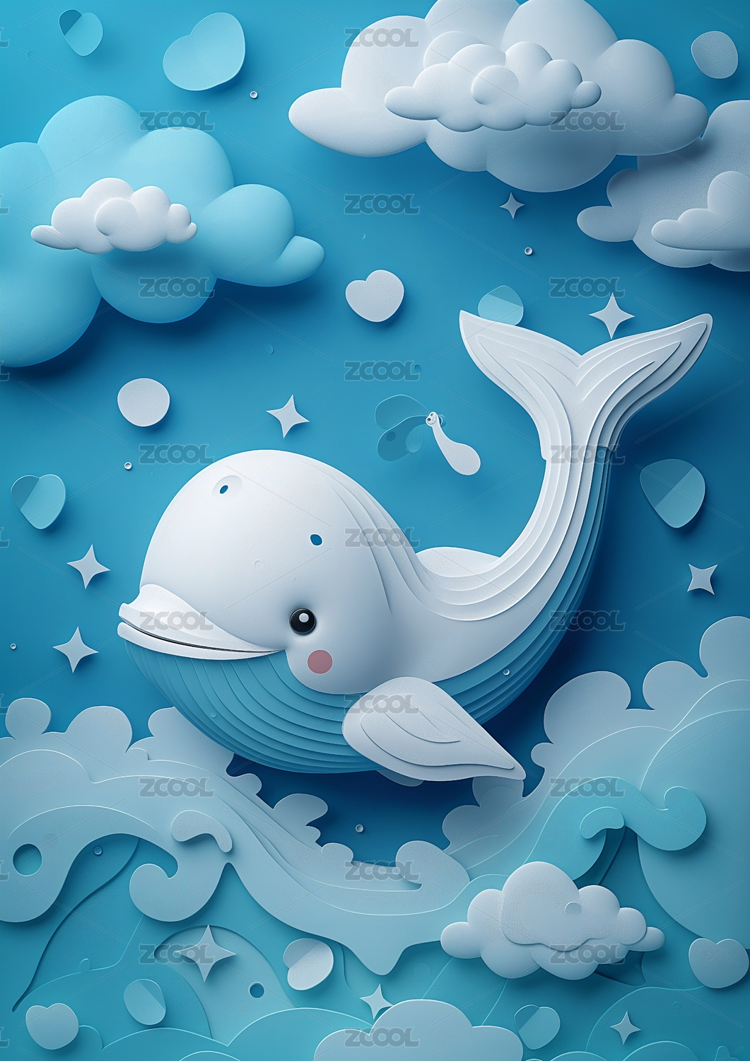 海洋中一头鲸鱼在游动