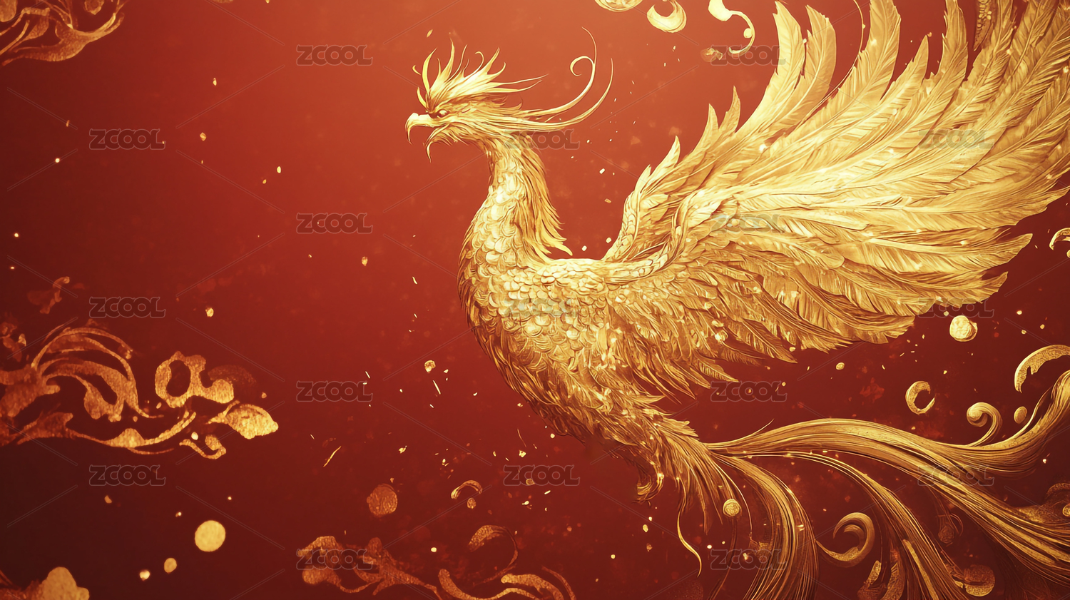 凤凰,神鸟,翅膀,鸟类,飞鸟,祥云,红色,喜庆,中国风,国潮
