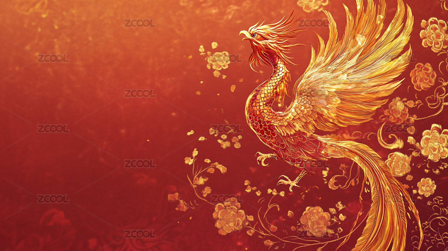 中国古风黄金凤凰背景新年喜庆背景插画