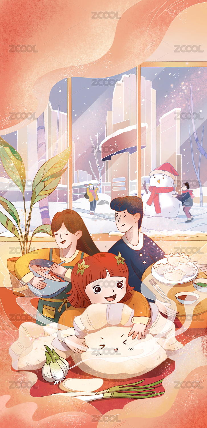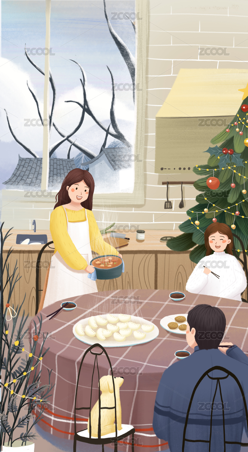 冬至,吃饺子,家庭聚会,家庭,冬天,下雪,饺子,愉快,团聚,幸福