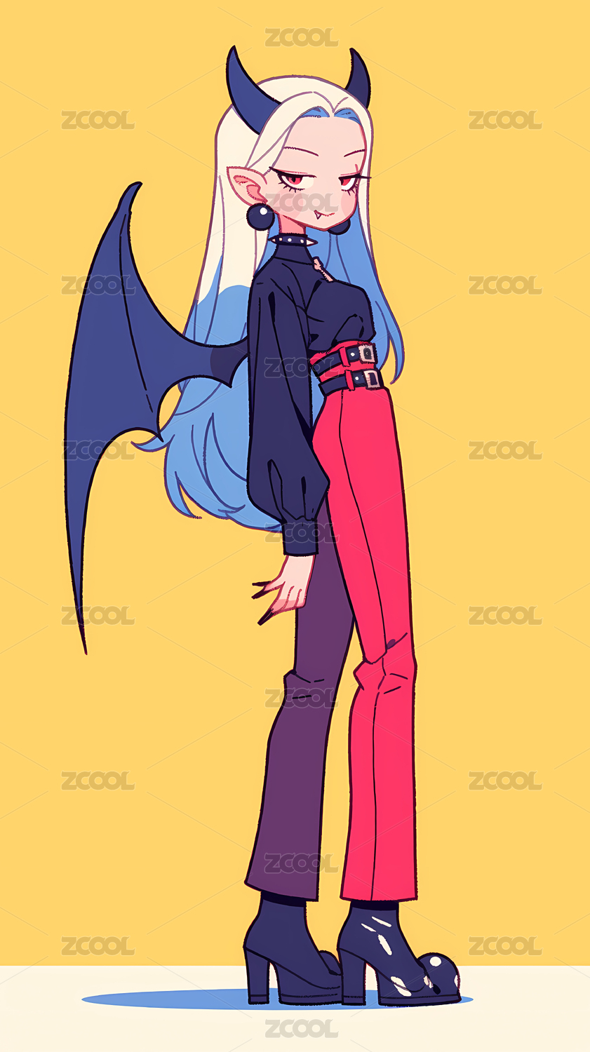 头上长角穿着红色裙子戴着帽子的金发女孩