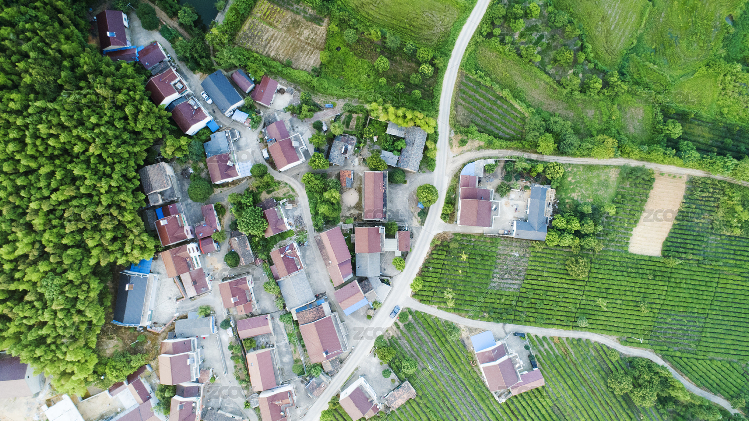航拍中国安徽省宣城市天子湖畔的美丽乡村