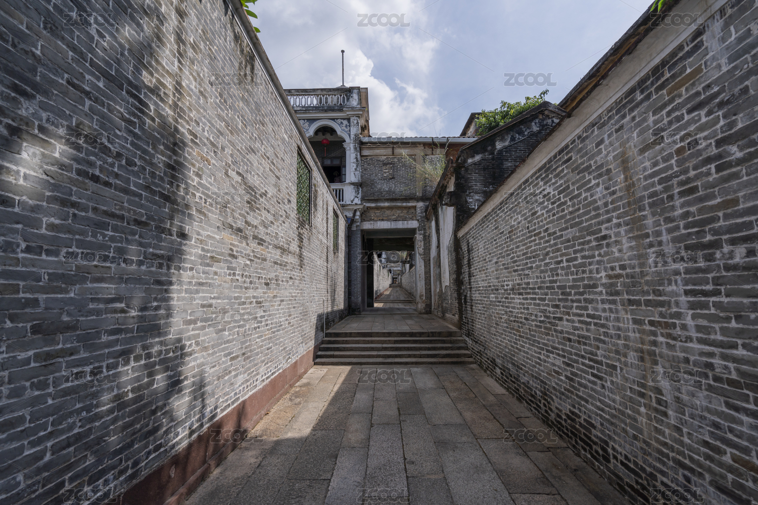 佛山梁园 砖瓦建筑房屋间的小巷道