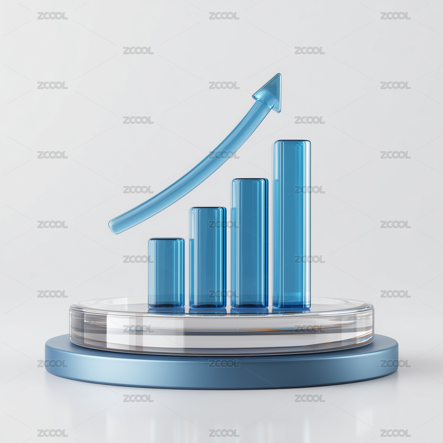 透蓝柱图增长底座场景