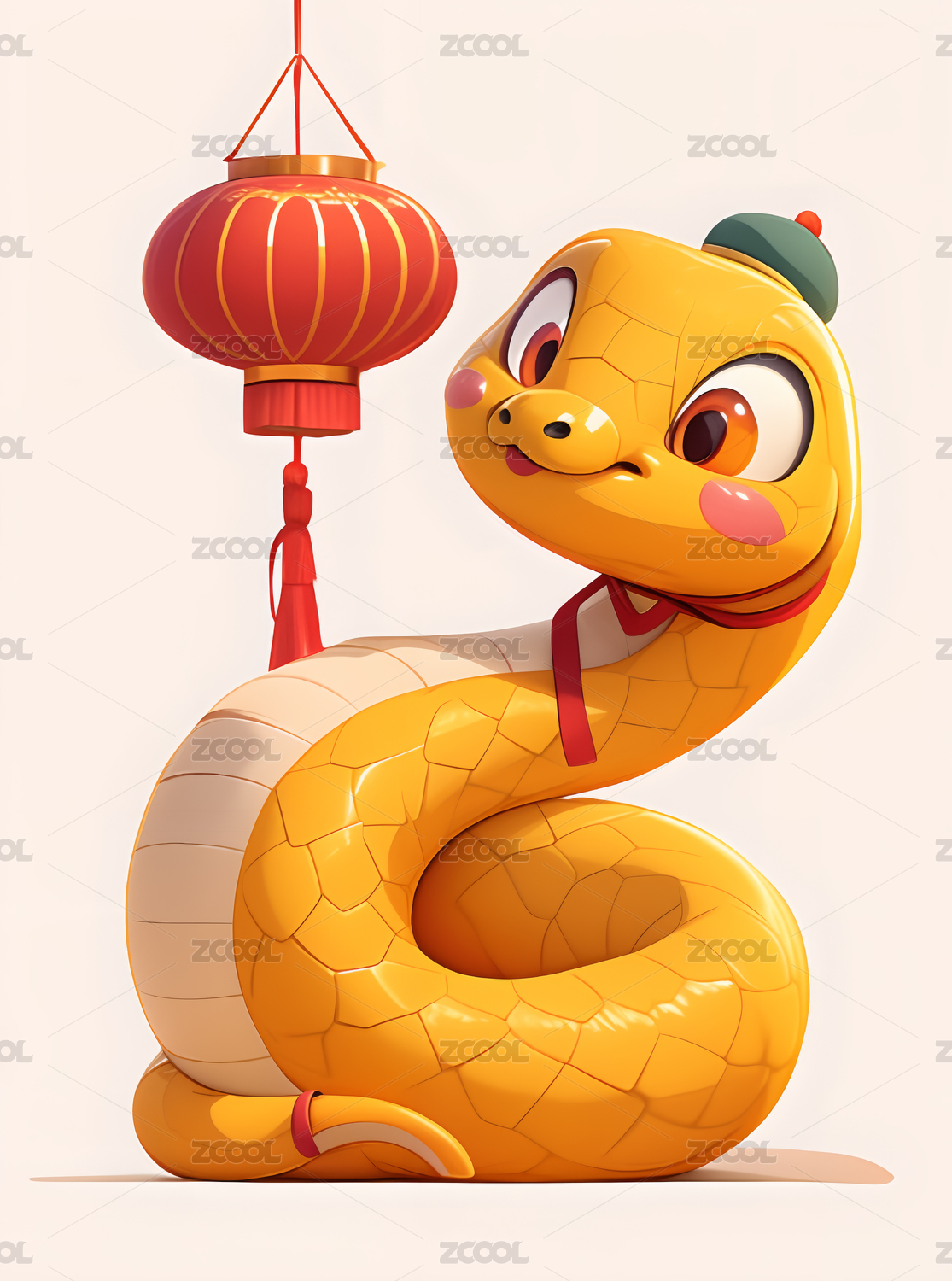 3D,卡通,蛇年,新年,生肖,蛇,红色,灯笼,竖屏,立体