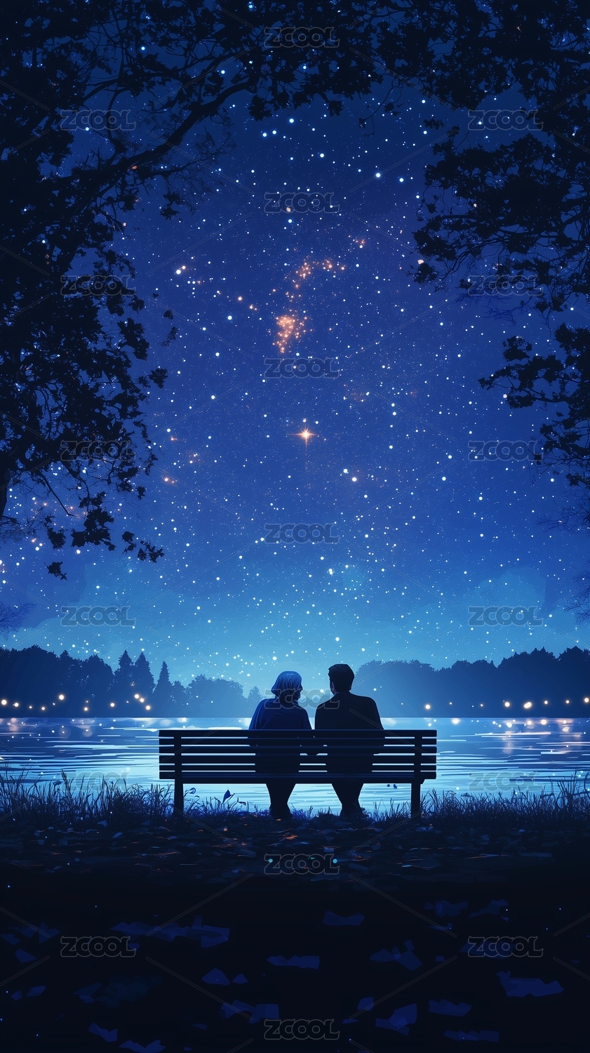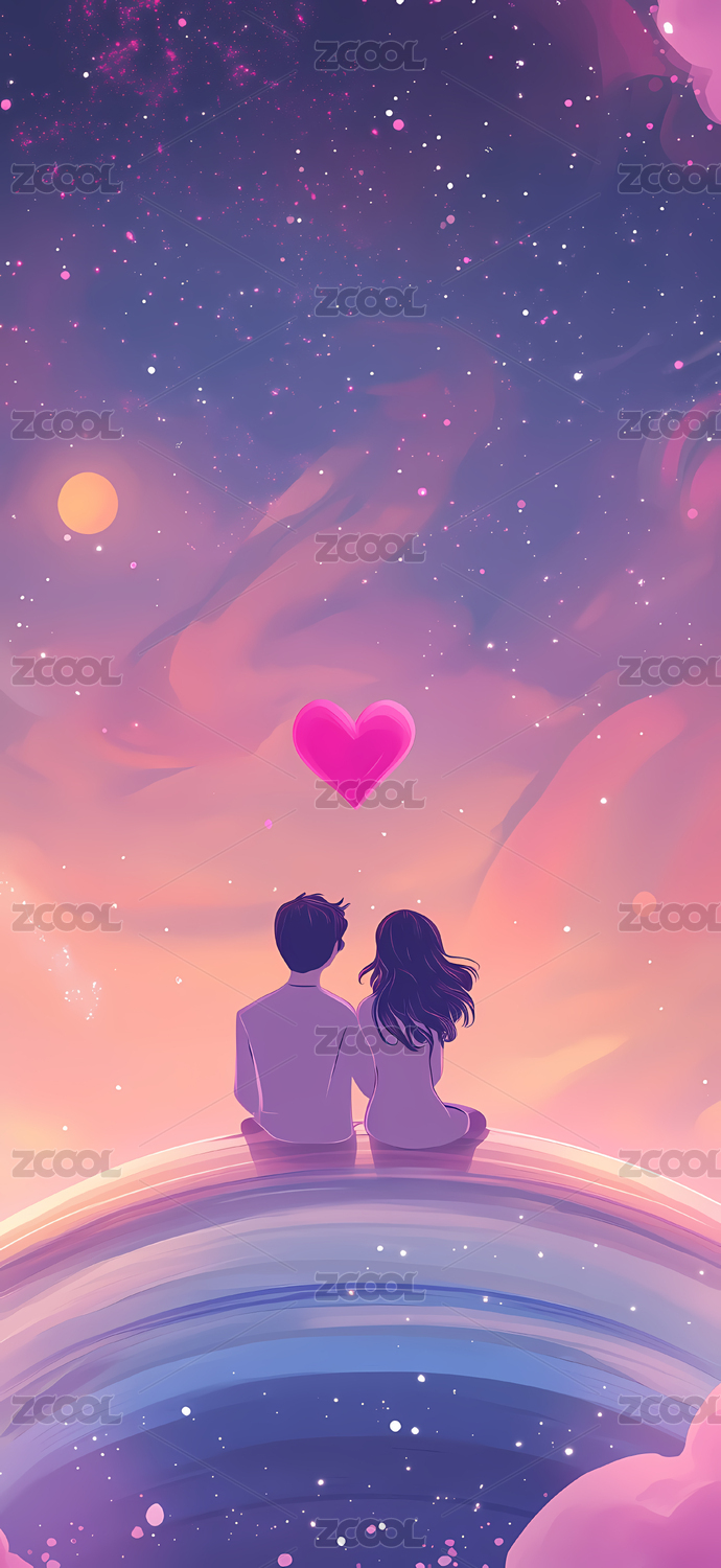 紫色,浪漫,唯美,梦幻,树木,天空,夜晚,情侣,情人节,云朵