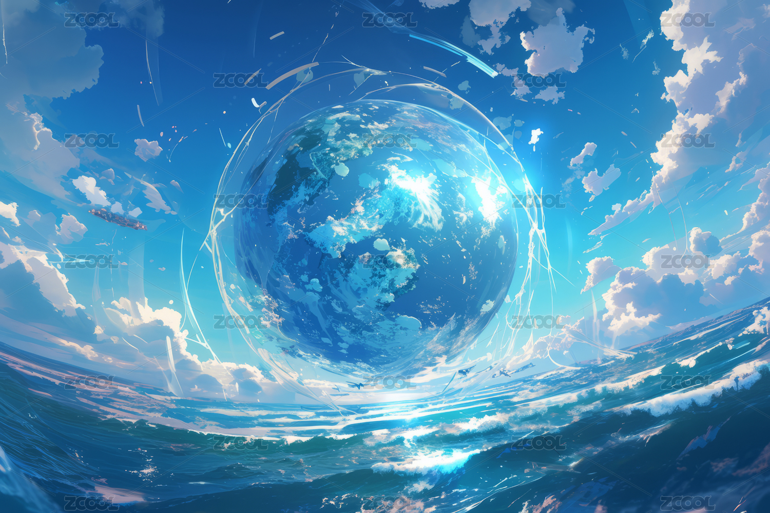 海洋岛屿海岛卡通漫画唯美二次元创意设计艺