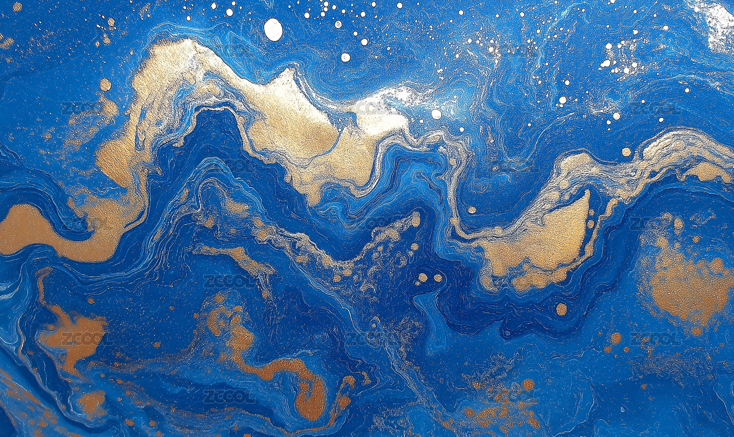 抽象蓝金色背景,带金色飞溅的抽象蓝色纹理