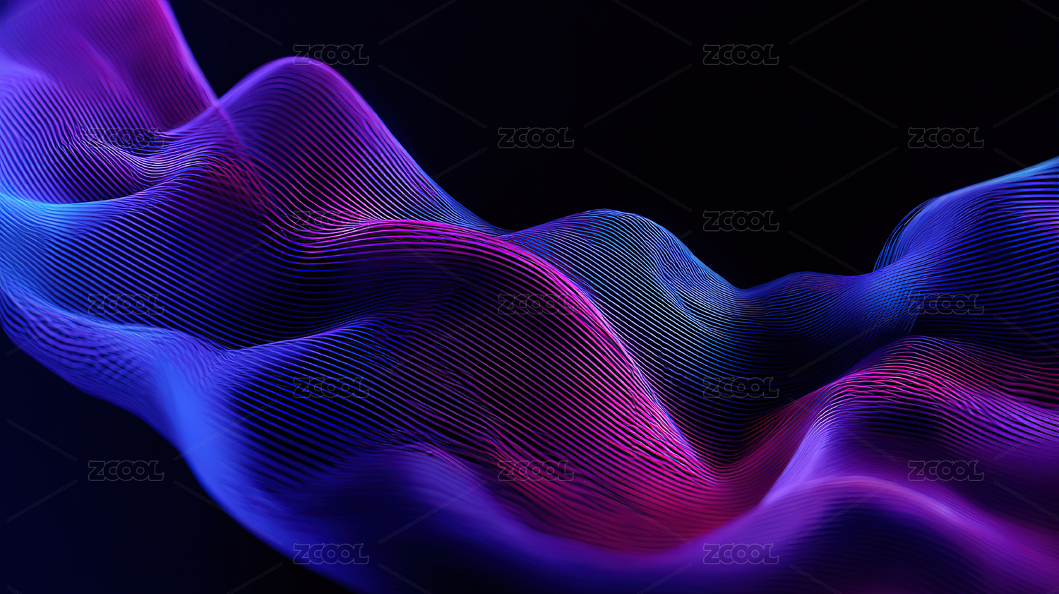 霓虹流动曲线波纹数字粒子背景点阵空气烟雾