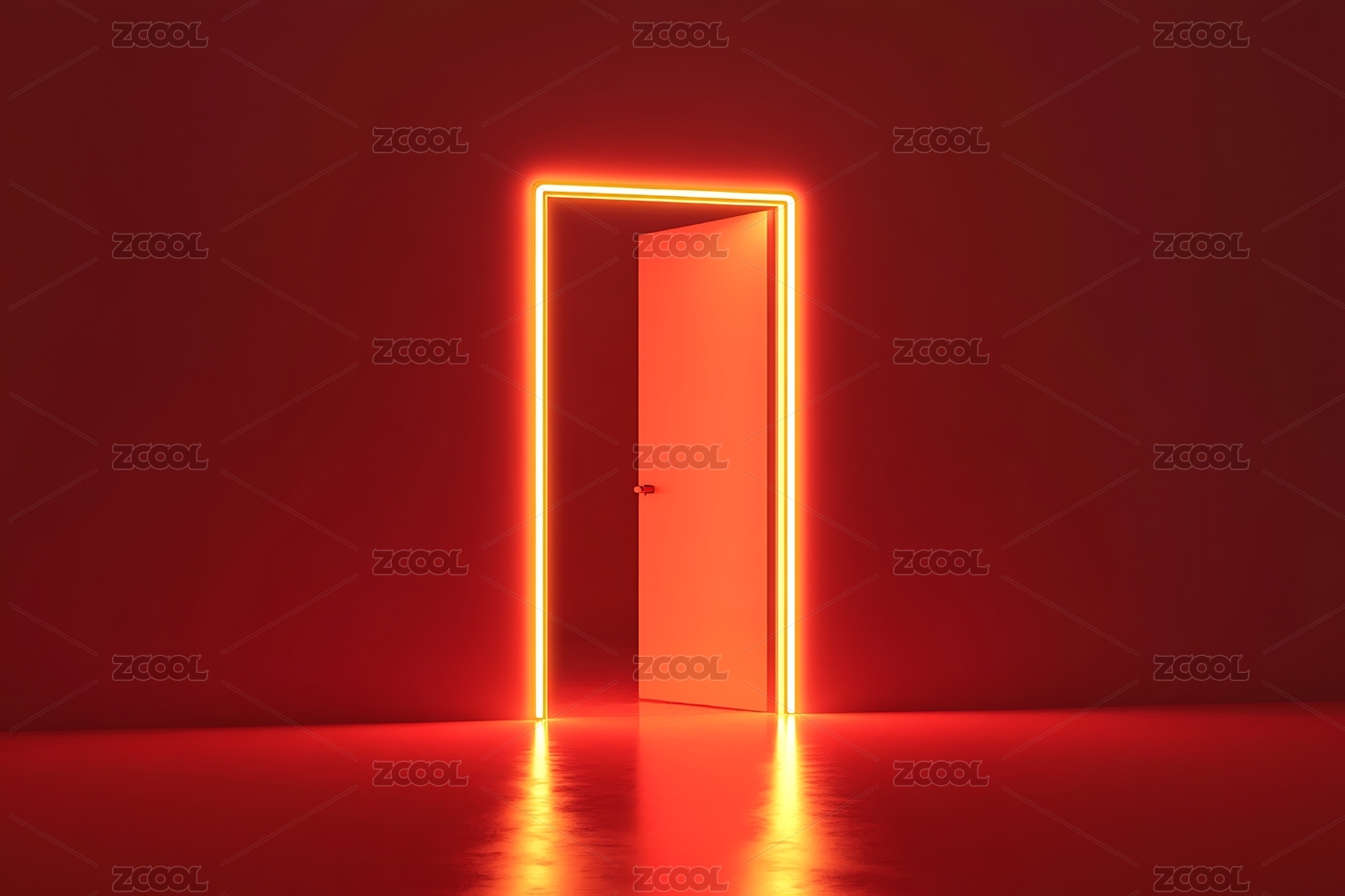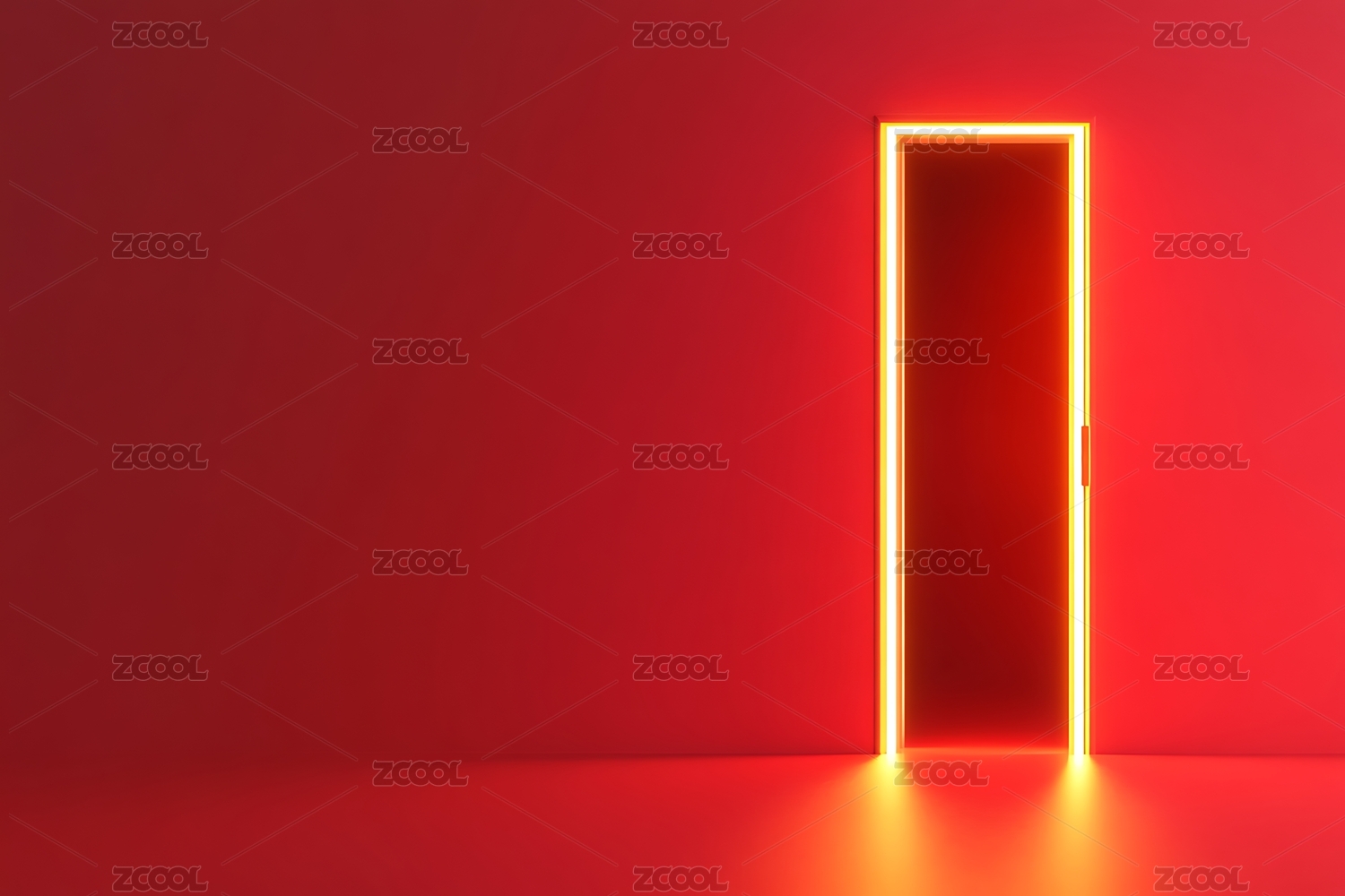 橙色霓虹门配渐变墙面