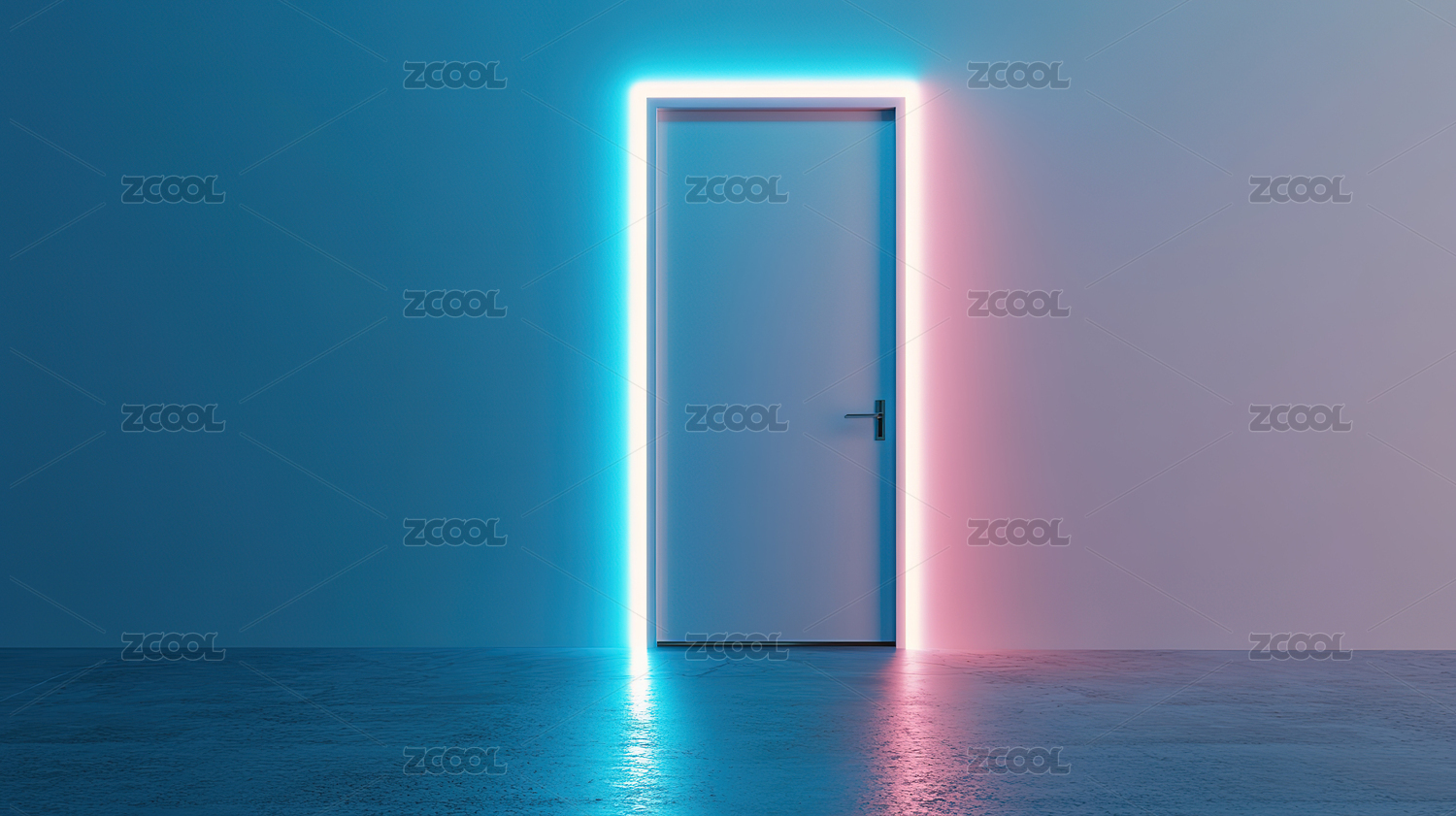 霓虹灯照亮的紫色房间里的门
