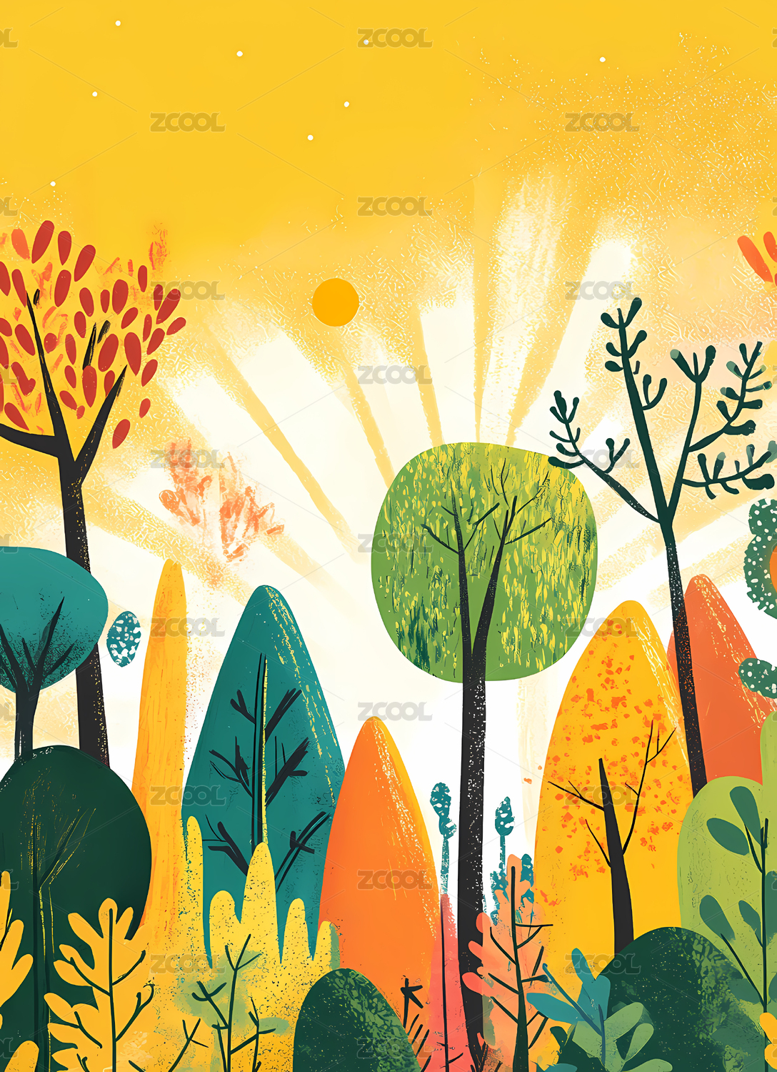 色彩斑斓的阳光森林