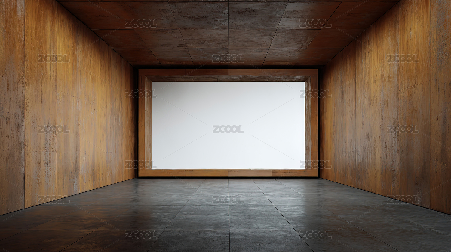 木质墙面与空白屏幕的室内空间
