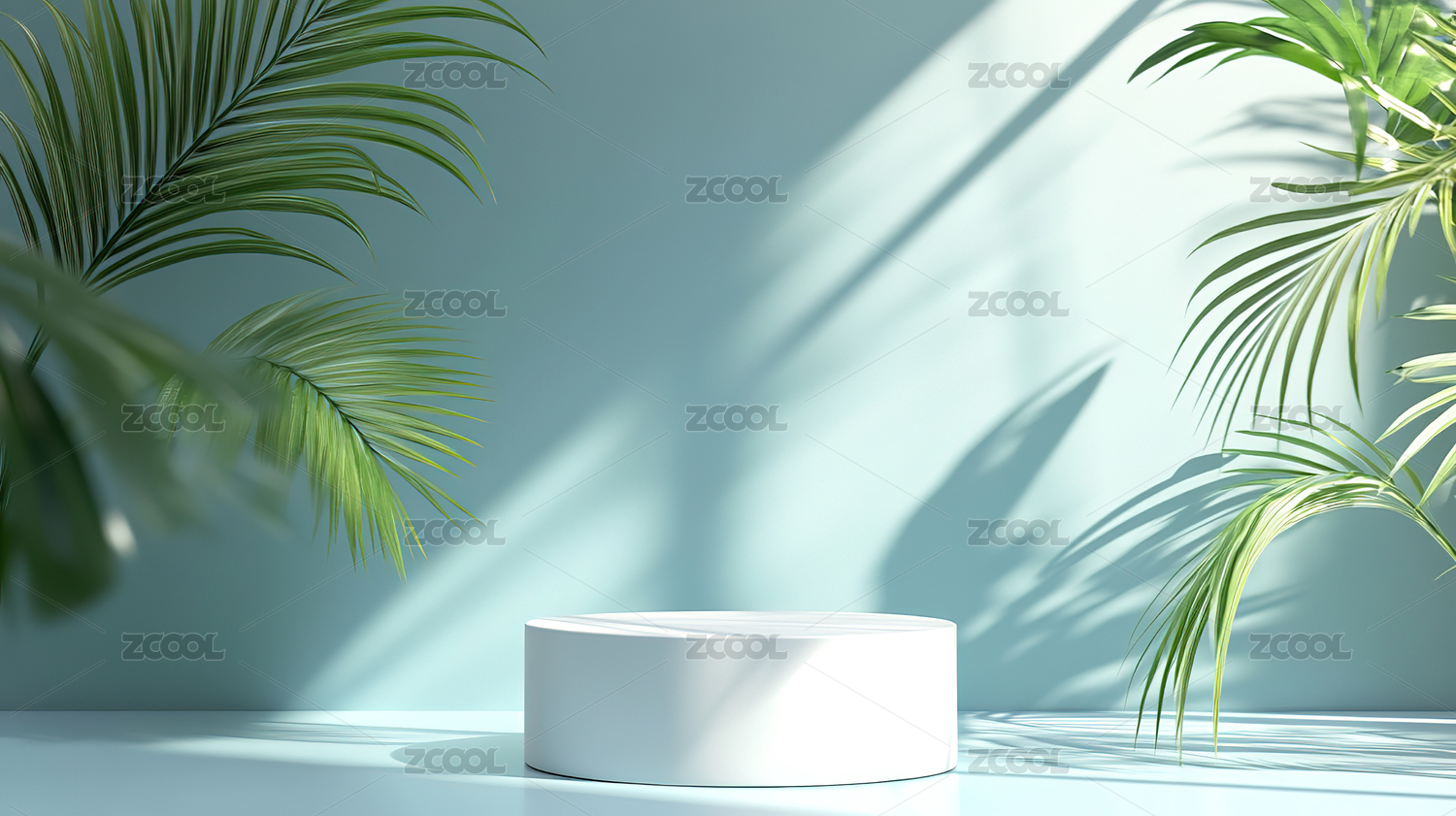 蓝色背景下的白色圆形台座