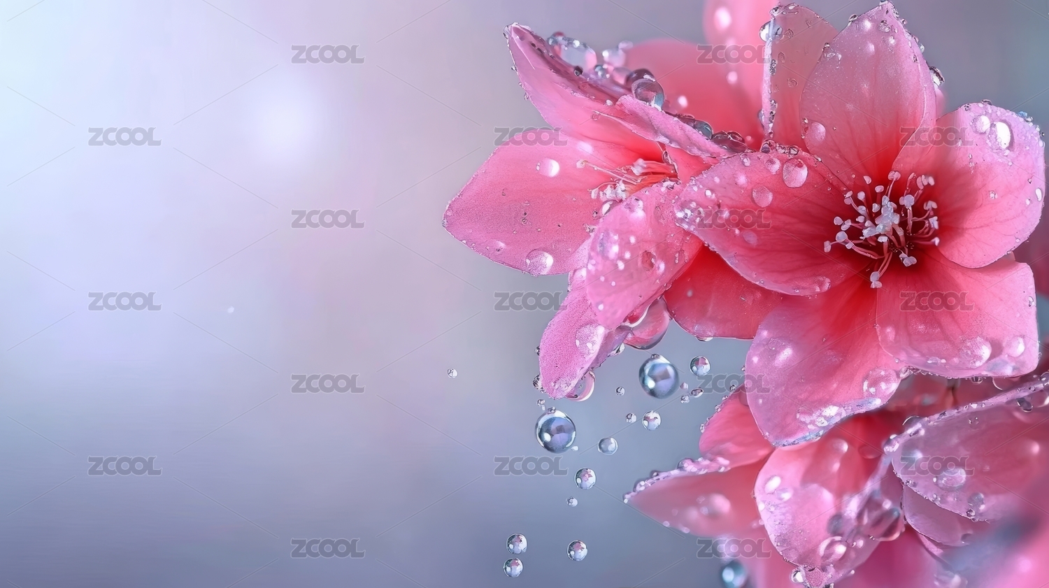 带水珠的天竺葵花和水面倒影美容护肤海报元