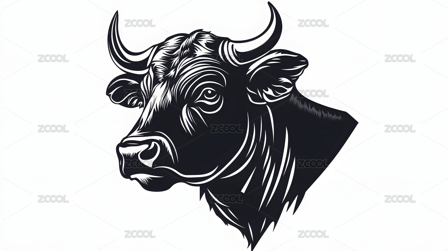 黑白雕刻风格牛头艺术设计插画