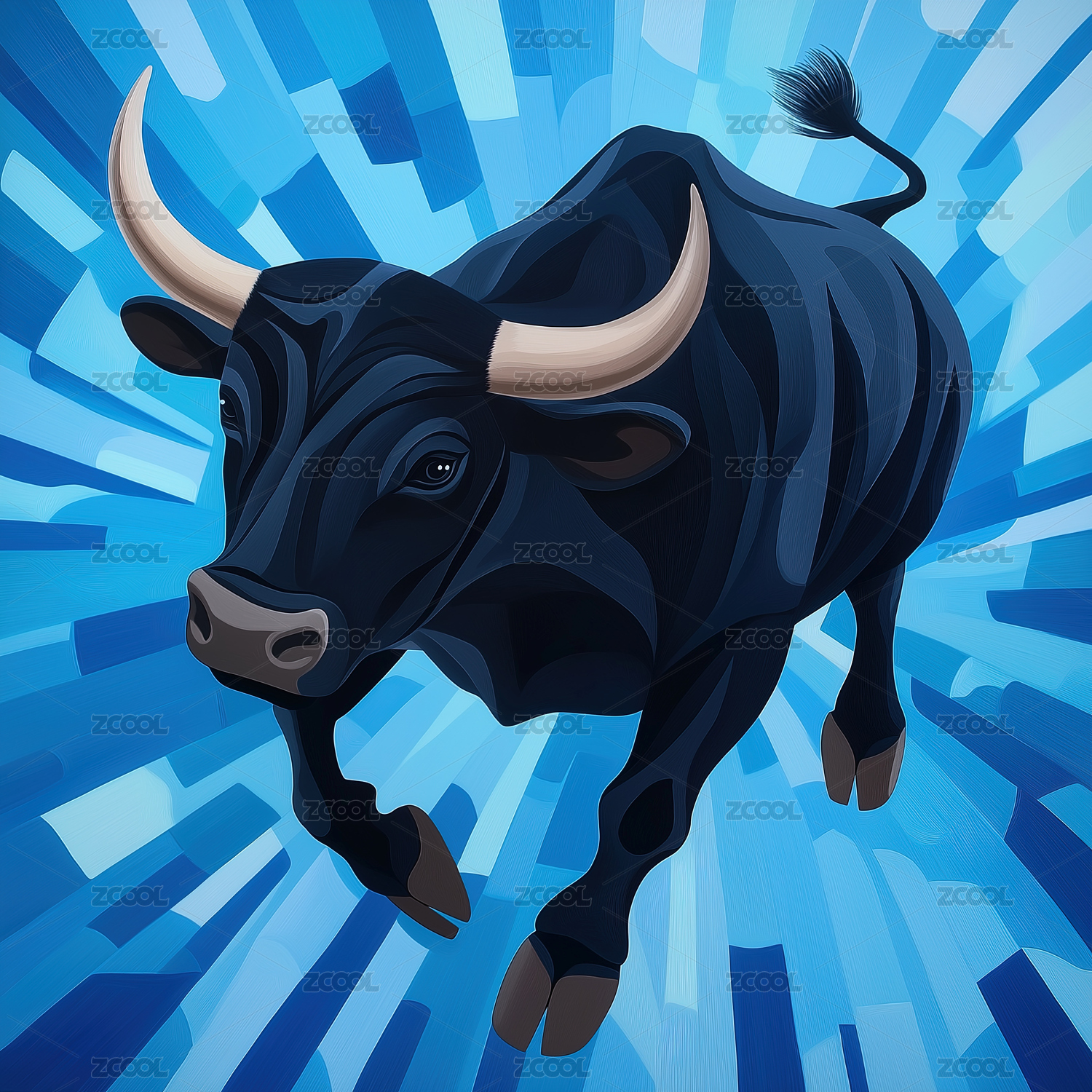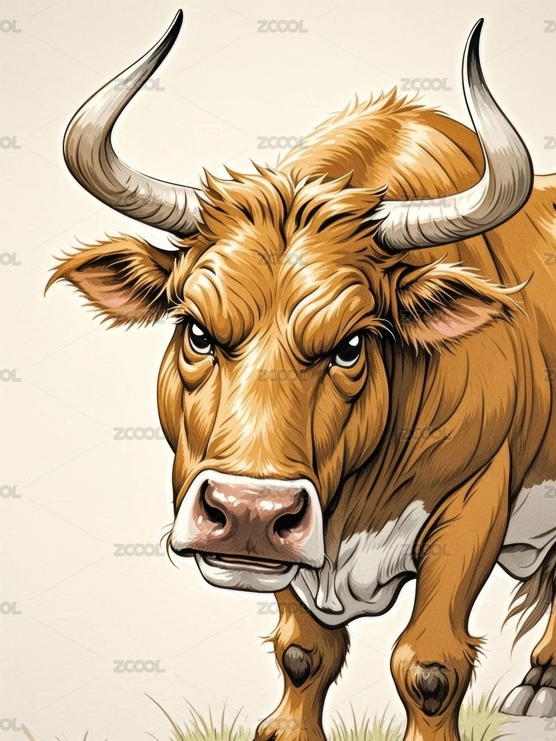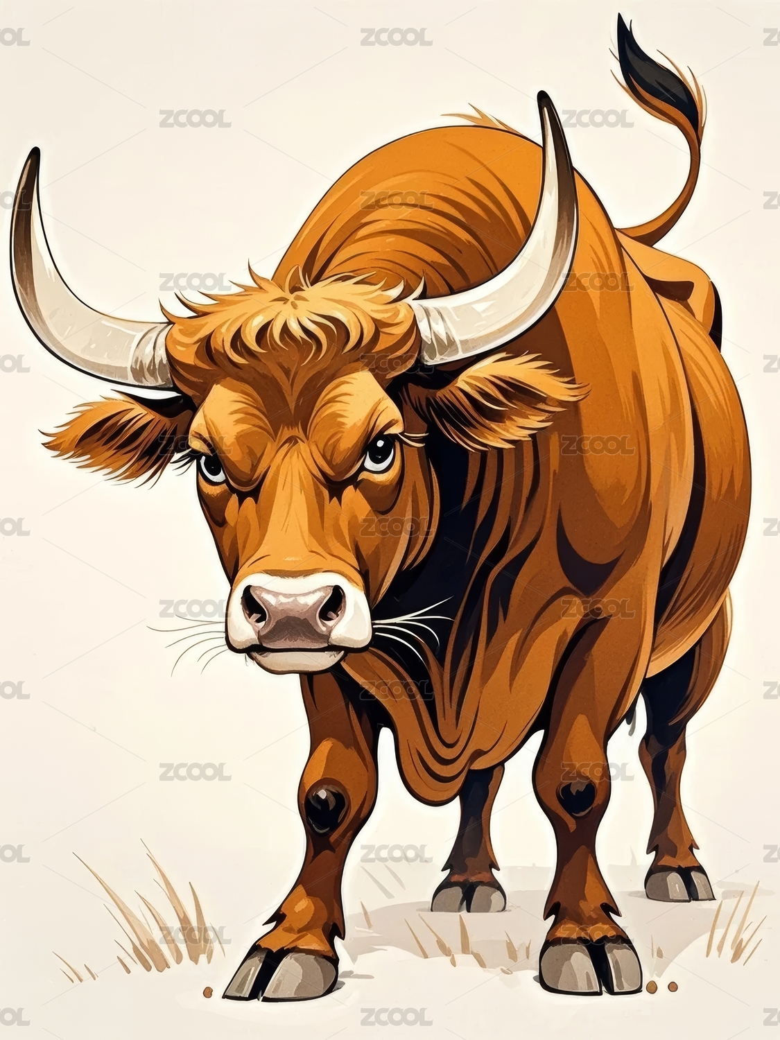 公牛插画艺术场景