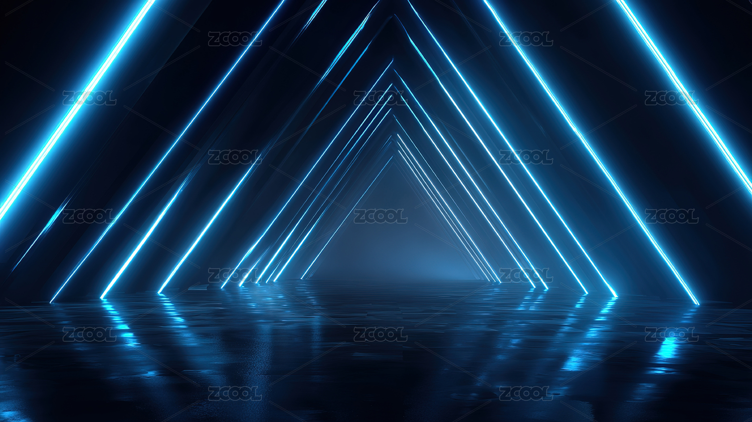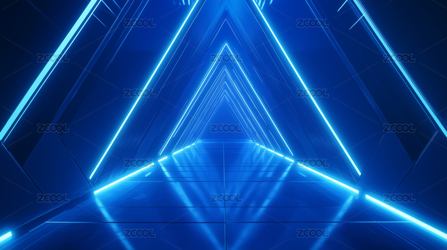 蓝色霓虹三角隧道