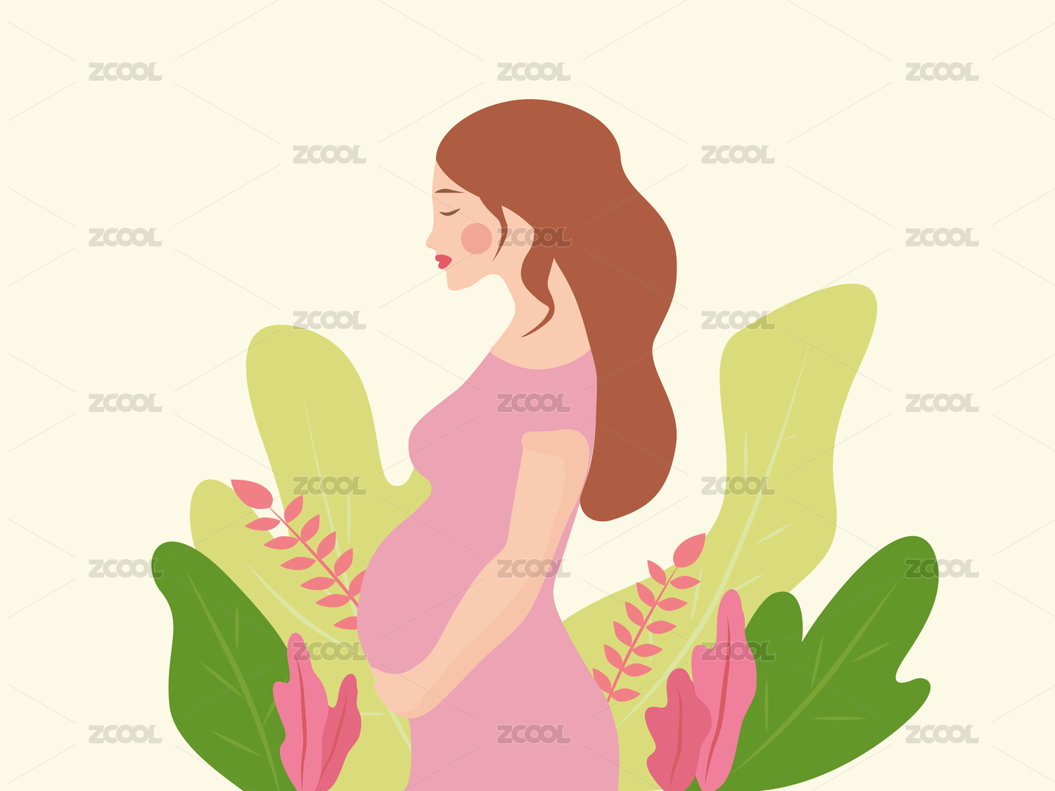 卡通红色爱心花朵环绕的孕妈母婴插画