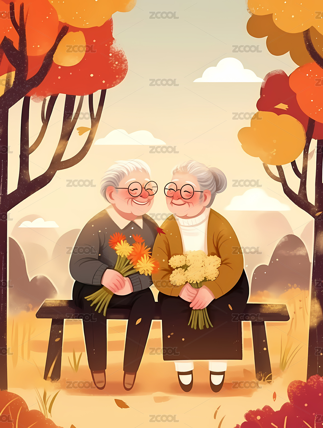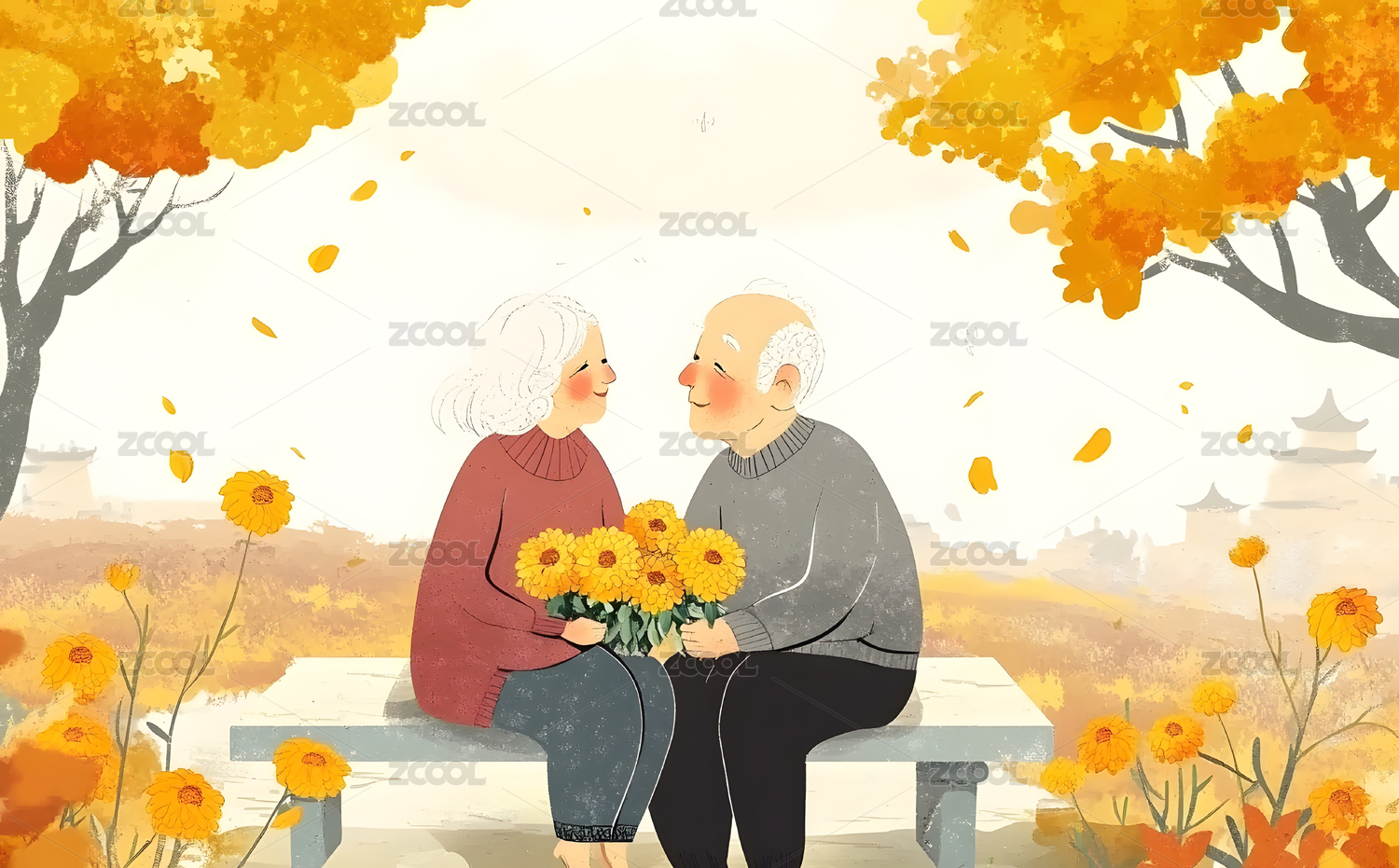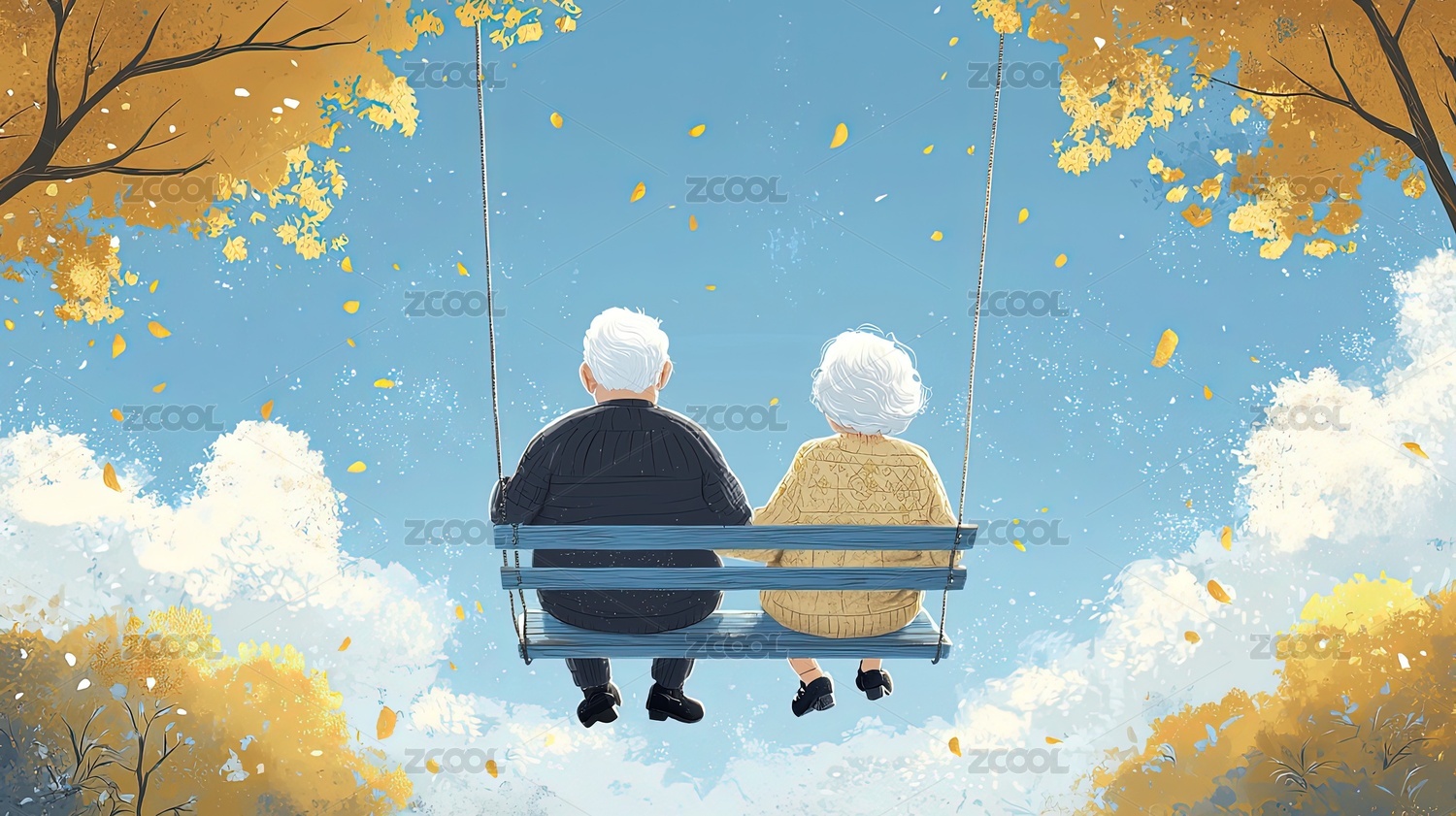 AIGC202406,重阳节,登高,赏秋,秋色,陪伴,关怀,祖孙,女孩,自然